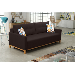 ARIEL je stylová pohovka do obývacího pokoje nebo i do soukromé pracovny, která zaujme jednoduchým tvarem a moderním, ale pěkným provedením. Pohovka s bočnicemi je na opěradle doplněna dvěma podlouhlými polštáři s dekorativním prošíváním, které zaručují komfort a pohodlí i při dlouhém odpočinku. Rozkládací pohovka je vybavena prostorným kontejnerem na lůžkoviny a má také funkci spaní, takže nábytek lze rozložit. Součástí pohovky ARIEL jsou dva dekorativní polštáře, které podtrhují modernistický charakter celé konstrukce. Volně stojící kus nábytku doplňuje podstavec z přírodního dřeva, který čalouněným prvkům dodává lehkost a svěží vzhled. Model ARIEL se vyrábí na individuální objednávku, takže jej lze přizpůsobit individuálním preferencím, mimo jiné výběrem vhodné barvy ze vzorníku barev, který je k dispozici na webových stránkách. Celá spací plocha pohovky je vyplněna vlnitou pružinou, která není ani příliš měkká, ani příliš tvrdá. Stylová pohovka ARIEL vám zaručí nejen pohodlný odpočinek, ale v moderně zařízeném prostoru bude působit i esteticky.