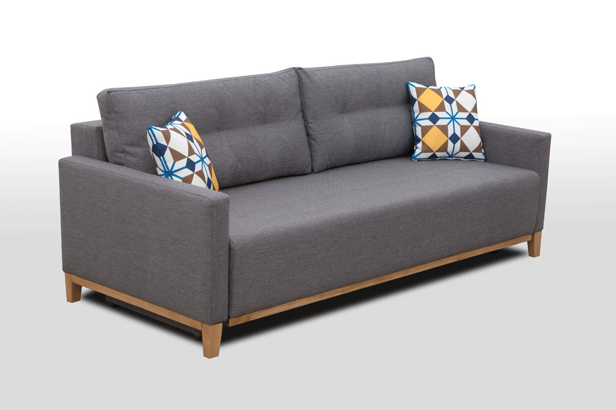 Pohovka Aristo ve skandinávském designu zaujme především svým jednoduchým a funkčním zpracováním. Pohovka je rozkládací a samozřejmostí je i úložný prostor, který poslouží např. na lůžkoviny. Jednoduchým rozložením pomocí automatu, získáte lůžko k příležitostnému přespání Vaší návštěvy. Návod na rozložení můžete shlédnout v krátkém gifu v doplňkových fotografiích. Naleznete tam také detailní rozměry pohovky. Pohodlí při sezení zajišťuje výplň sedáku, která je složena z pružin bonell a kvalitní PUR pěny a také opěrné polštáře, které jsou odnímatelné a můžete si je přizpůsobit podle svých potřeb. Pohovku nabízíme v několika barevných provedeních. Úvodní fotografie je ilustrační, vzorek látky, ve které bude pohovka dodána, je vyobrazen v doplňkových fotografiích. Moření dřeva není možno zvolit. V ceně pohovky jsou 2 malé vzorované polštářky, které jsou vyobrazené na fotografii. Ostatní vyobrazené doplňky a dekorace nejsou v ceně.