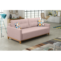 Pohovka Aristo ve skandinávském designu zaujme především svým jednoduchým a funkčním zpracováním. Pohovka je rozkládací a samozřejmostí je i úložný prostor, který poslouží např. na lůžkoviny. Jednoduchým rozložením pomocí automatu, získáte lůžko k příležitostnému přespání Vaší návštěvy. Návod na rozložení můžete shlédnout v krátkém gifu v doplňkových fotografiích. Naleznete tam také detailní rozměry pohovky. Pohodlí při sezení zajišťuje výplň sedáku, která je složena z pružin bonell a kvalitní PUR pěny a také opěrné polštáře, které jsou odnímatelné a můžete si je přizpůsobit podle svých potřeb. Pohovku nabízíme v několika barevných provedeních. Úvodní fotografie je ilustrační, vzorek látky, ve které bude pohovka dodána, je vyobrazen v doplňkových fotografiích. Moření dřeva není možno zvolit. V ceně pohovky jsou 2 malé vzorované polštářky, které jsou vyobrazené na fotografii. Ostatní vyobrazené doplňky a dekorace nejsou v ceně.