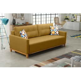 Pohovka Aristo ve skandinávském designu zaujme především svým jednoduchým a funkčním zpracováním. Pohovka je rozkládací a samozřejmostí je i úložný prostor, který poslouží např. na lůžkoviny. Jednoduchým rozložením pomocí automatu, získáte lůžko k příležitostnému přespání Vaší návštěvy. Návod na rozložení můžete shlédnout v krátkém gifu v doplňkových fotografiích. Naleznete tam také detailní rozměry pohovky. Pohodlí při sezení zajišťuje výplň sedáku, která je složena z pružin bonell a kvalitní PUR pěny a také opěrné polštáře, které jsou odnímatelné a můžete si je přizpůsobit podle svých potřeb. Pohovku nabízíme v několika barevných provedeních. Úvodní fotografie je ilustrační, vzorek látky, ve které bude pohovka dodána, je vyobrazen v doplňkových fotografiích. Moření dřeva není možno zvolit. V ceně pohovky jsou 2 malé vzorované polštářky, které jsou vyobrazené na fotografii. Ostatní vyobrazené doplňky a dekorace nejsou v ceně.