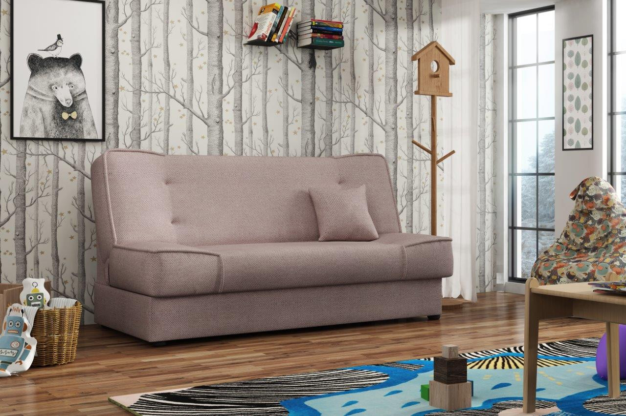 Pohovka Bega je vyrobená v jednoduchém a zároveň nadčasovém designu, který se hodí do každého interiéru a skvěle ho doplní. Díky svým rozměrům nezabere moc místa a je vhodná i do malých pokojů. Výplň sedáku tvoří kombinace pružin bonell s kvalitní PUR pěnou. Pohovka je rozkládací a samozřejmostí je i nepostradatelný úložný prostor. Jednoduchým rozložením pomocí systému klik-klak vznikne lůžko k občasnému přespání. Vybrat si můžete z několika trendy odstínů. V ceně pohovky je 1 dekorační polštářek. Ostatní vyobrazené doplňky a dekorace nejsou v ceně. Zobrazení barev na fotografii se může od skutečnosti lišit.