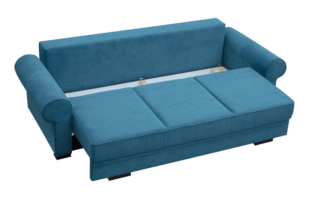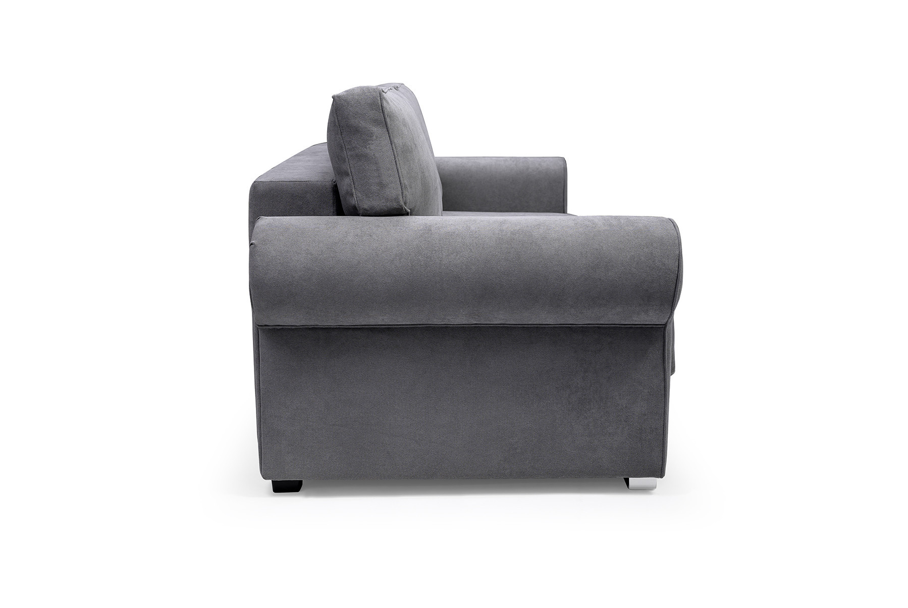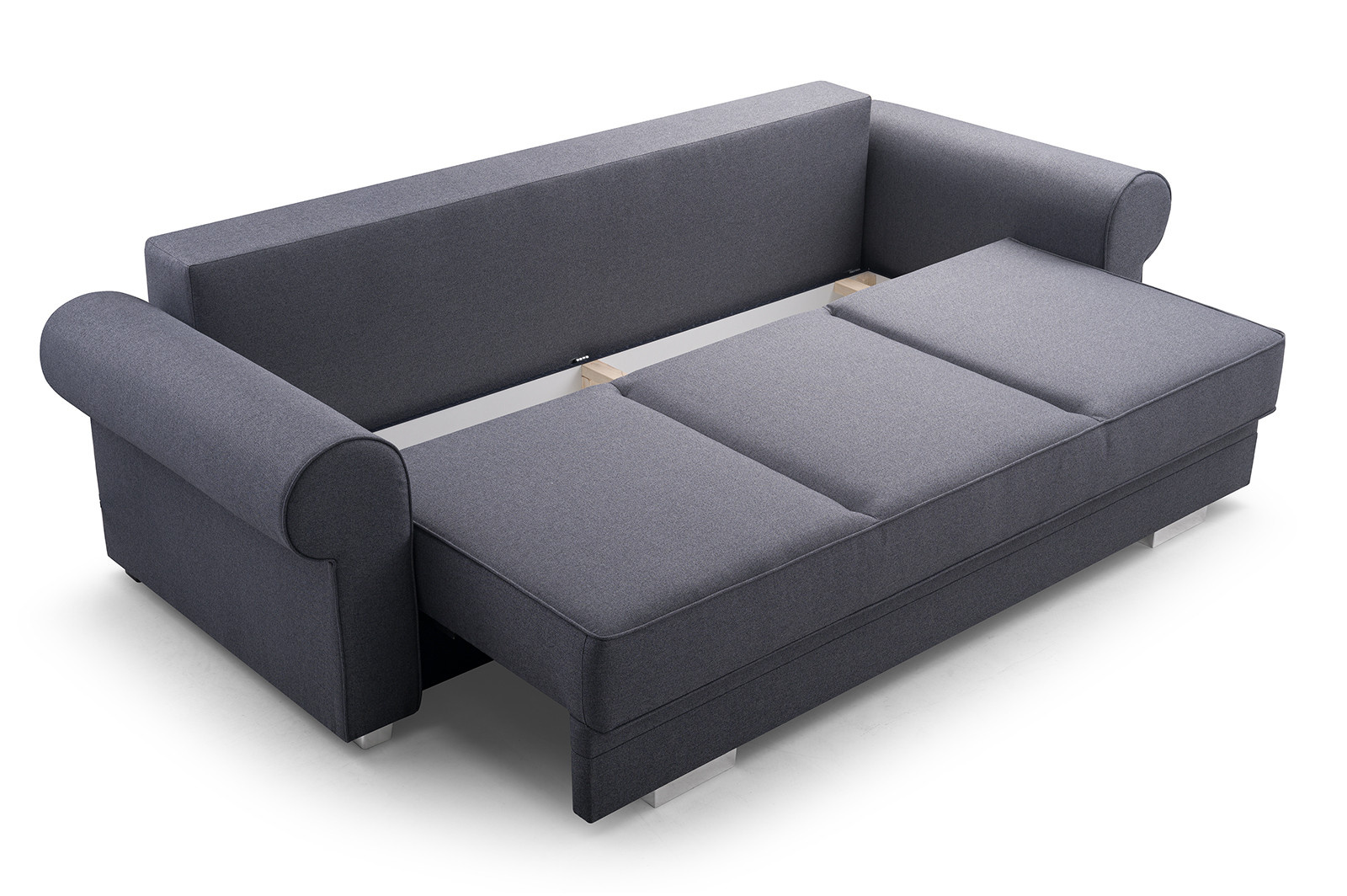 BUKIET je moderně navržená třímístná rozkládací pohovka. Nábytek je čalouněný látkou, jejíž barvy lze vybrat ze vzorníku barev dostupného na webových stránkách. Stylová pohovka je kus nábytku vybavený automatickou rozkládací pomůckou, díky níž ji bude možné bez větších problémů rychle přeměnit na lůžko. Pohovka BUKIET je volně stojící kus nábytku, a proto je její opěradlo také čalouněné - takové řešení umožňuje umístit pohovku i do centrální části obývacího pokoje. Nábytek s moderním designem s bočnicemi je umístěn na chromových nožkách, které mu dodávají zajímavý charakter. Model BUKIET je umístěn na dřevěném rámu a sedák a opěrák jsou zakončeny vlnitými pružinami, které pomáhají udržovat správnou pružnost, takže ani přes časté používání nedochází k nevzhledným deformacím. Pohovka BUKIET s klasickým tvarem zaujme na první pohled svými mírně zaoblenými boky a polštáři umístěnými na opěradle, které zajistí pohodlí a komfort i při mnohahodinovém sezení.