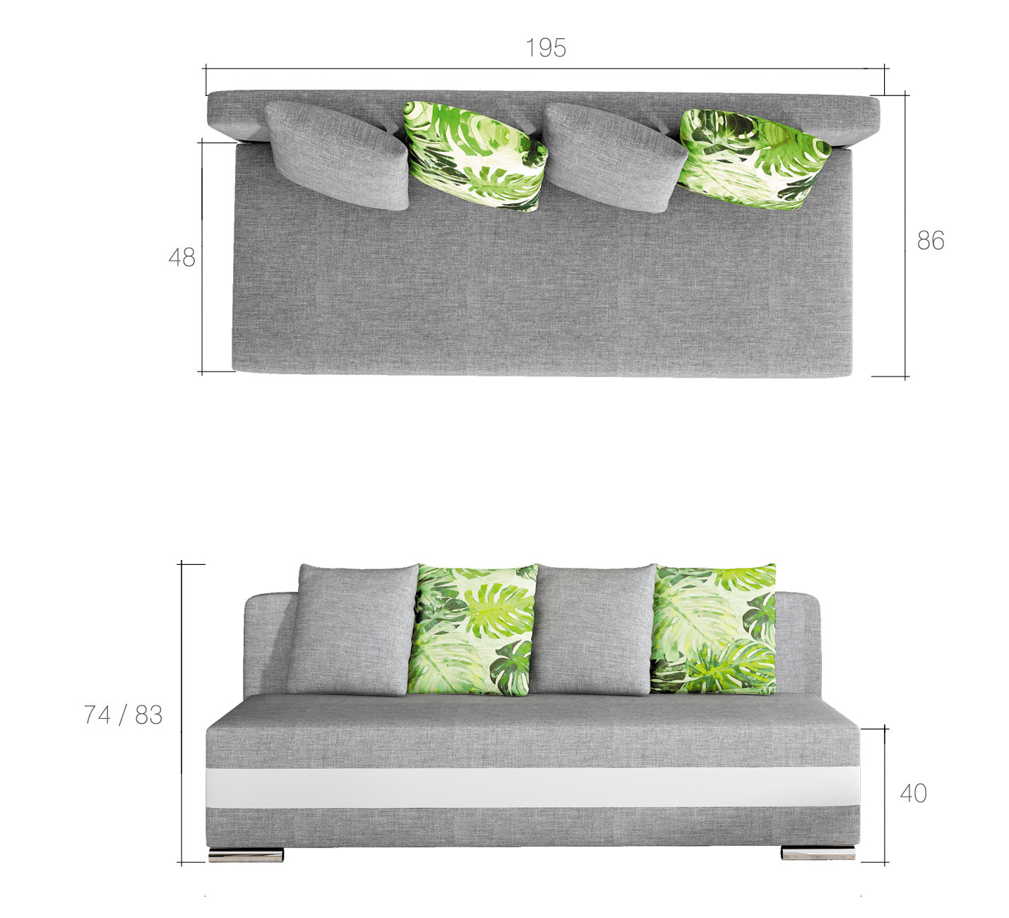 - Pohovku lze navíc rozložit a vytvořit tak spací plochu o rozměrech 195x140 cm.