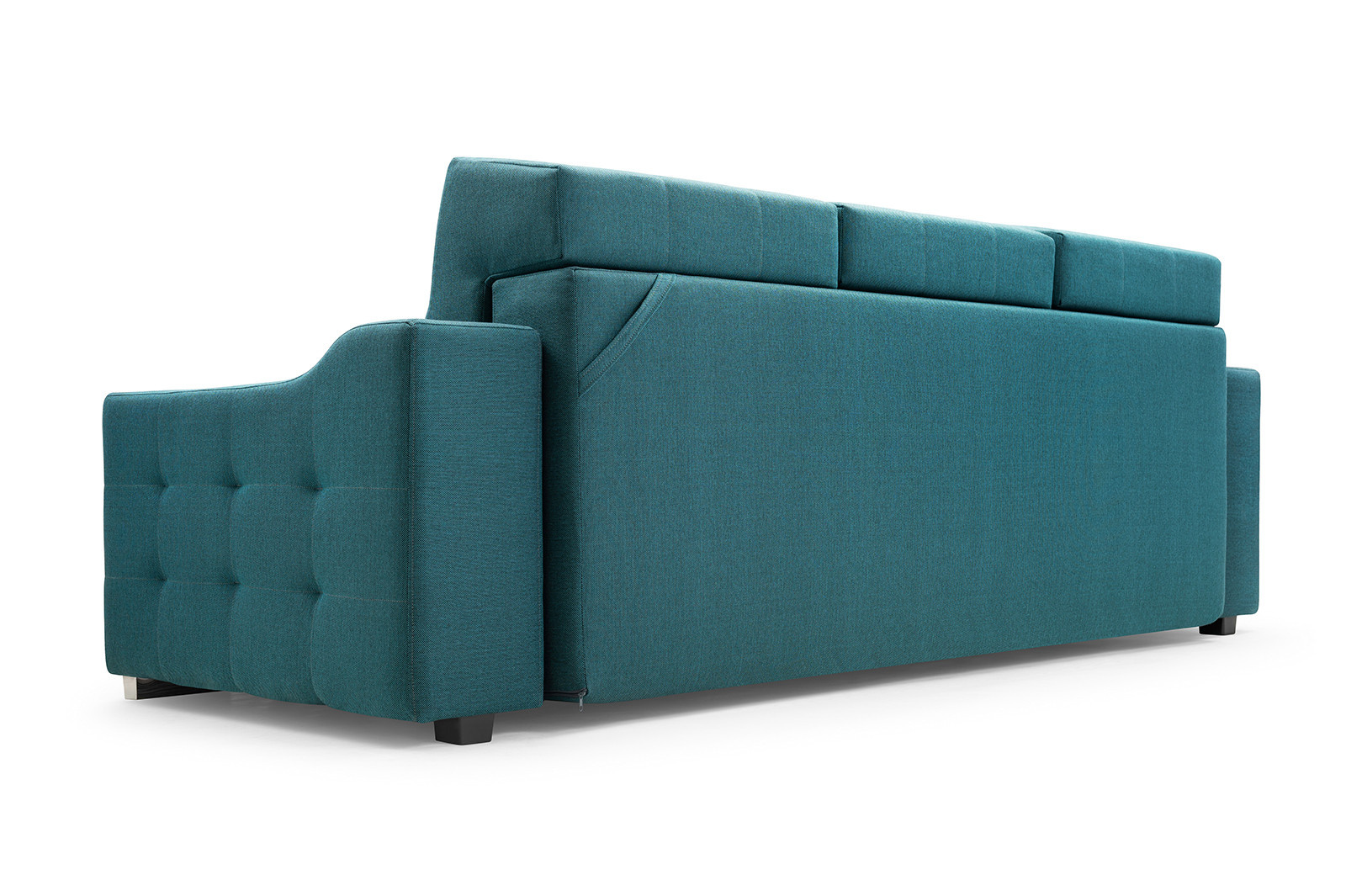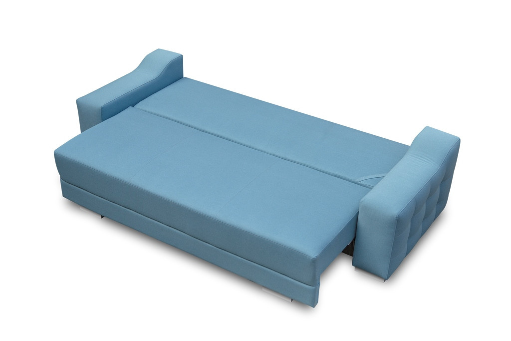 Modernistická pohovka CYPIS je masivní třímístná pohovka, která bude atraktivním a zároveň praktickým kusem nábytku do obývacího pokoje nebo obývacího pokoje. Stylová pohovka s bočnicemi je kus nábytku s funkcí spaní, který zaručuje pohodlný a bezpečný spánek. Tento kus nábytku, dokončený ve skandinávském dekoru, osloví i ty nejnáročnější uživatele - vypadá esteticky a zároveň poskytuje pohodlí a komfort i při dlouhém sezení. Rozkládací pohovka CYPIS je vybavena prostorným úložným prostorem na lůžkoviny a automatickým rozkládáním, díky níž je přeměna pohovky na lůžko rychlá a efektivní. Model CYPIS stojí na masivním dřevěném rámu a celou konstrukci podpírají chromované nohy, které nábytku dodávají moderní charakter. Výplň pohovky tvoří vlnité pružiny, které udržují odpovídající pružnost sedáku a opěráku. Součástí sady s pohovkou jsou dva dekorační polštáře. Volně stojící pohovka CYPIS potěší prošívanými boky i prošíváním viditelným na tvarovaném opěradle. Pohovka do obývacího pokoje může být čalouněná látkou nebo ekokůží v široké škále barev, ze kterých si můžete vybrat.