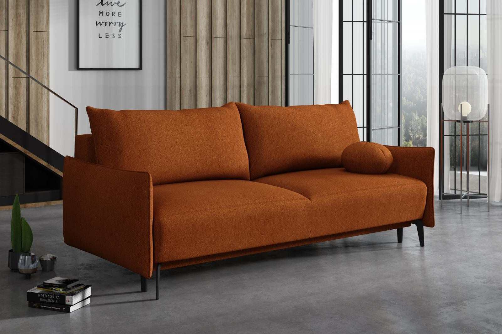 Pohovka Damira je velmi pohodlná polštářová a rozkládací pohovka. Výplň sedáku tvoří vlnité pružiny s PUR pěnou. Pohodlí při sezení mimo jiné, poskytuje dostatek polštářů, které si můžete přizpůsobit tak, aby se Vám pohodlně sedělo a odpočívalo. Jednoduchým rozložením pomocí automatu získáte dostatečně velké lůžko pro příležitostné přespání Vaší návštěvy. Samozřejmostí je také nezbytný úložný prostor, který využijete např. na lůžkoviny. Pohovka je celočalouněná, takže ji můžete umístit také do prostoru. Výborně se hodí do obývacího pokoje, do pracovny či pokoje pro hosty. Vyobrazené doplňky a dekorace nejsou v ceně.