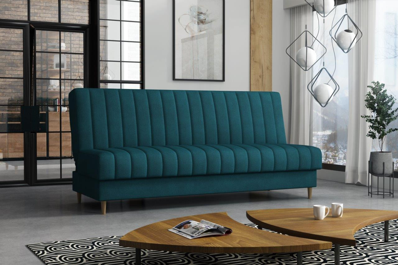 Pohovka Ejmy v sobě spojuje eleganci, funkčnost a příznivou cenu. Je vyrobená v jednoduchém nadčasovém designu, který se hodí do každého inferiéru. Umístit ji můžete nejen do obývacího pokoje, ale také např. do pracovny, nebo hostinského pokoje. Pohovka je rozkládací. Jednoduchým rozložením získáte lůžko k občasnému přespání Vaší návštěvy. Samozřejmostí je i praktický úložný prostor, který můžete využít třeba na lůžkoviny. Pohovku nabízíme v několika barevných provedeních. Vyobrazené doplňky a dekorace nejsou v ceně. Zobrazení barev na fotografii se může od skutečnosti lišit.