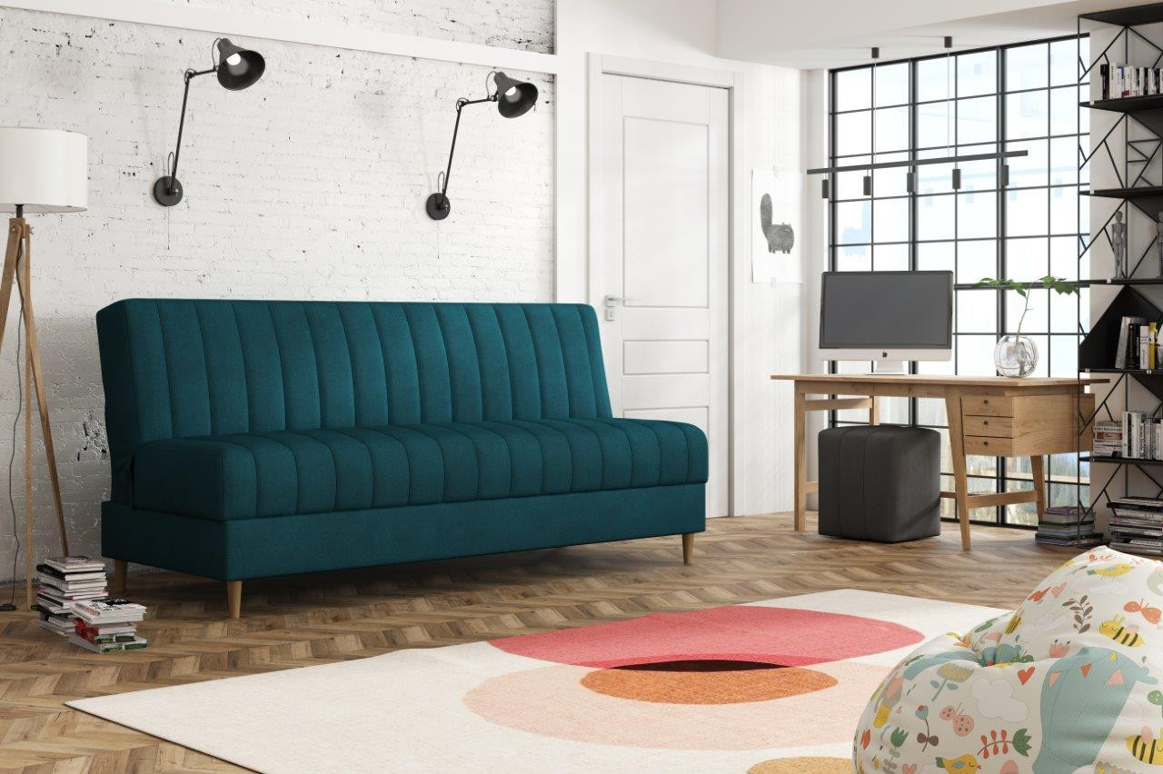 Pohovka Ejmy Mini v sobě spojuje eleganci, funkčnost a příznivou cenu. Je vyrobená v jednoduchém nadčasovém designu, který se hodí do každého inferiéru. Díky svým rozměrům se lehce vejde i do menší místnosti. Umístit ji můžete nejen do obývacího pokoje, ale také např. do pracovny, nebo hostinského pokoje. Pohovka je rozkládací. Jednoduchým rozložením získáte lůžko k občasnému přespání Vaší návštěvy. Samozřejmostí je i praktický úložný prostor, který můžete využít třeba na lůžkoviny. Pohovku nabízíme v několika barevných provedeních. Vyobrazené doplňky a dekorace nejsou v ceně. Zobrazení barev na fotografii se může od skutečnosti lišit.
