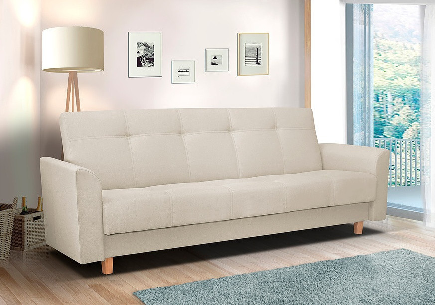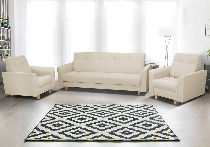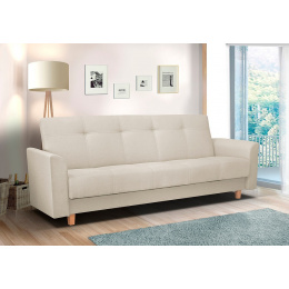 Pohovka Gala potěší milovníky Retro designu. Pohovka je rozkládací a samozřejmostí je i praktický úložný prostor. Retro styl podtrhují dřevěné nožky a prošití s vtahy. Je potažena látkou v pastelových barvách a můžete si vybrat ze 4 atraktivních odstínů. Tento typ nabízíme i v klasickém provedení 3R+1+1. Najdete ji v kategorii sedací soupravy 3+1+1. Výplň sedáku tvoří kombinace pružin bonell s kvalitní PUR pěnou. Jednoduchým rozložením pomocí systému klik-klak vznikne lůžko k občasnému přespání. Vyobrazené dekorace nejsou v ceně.