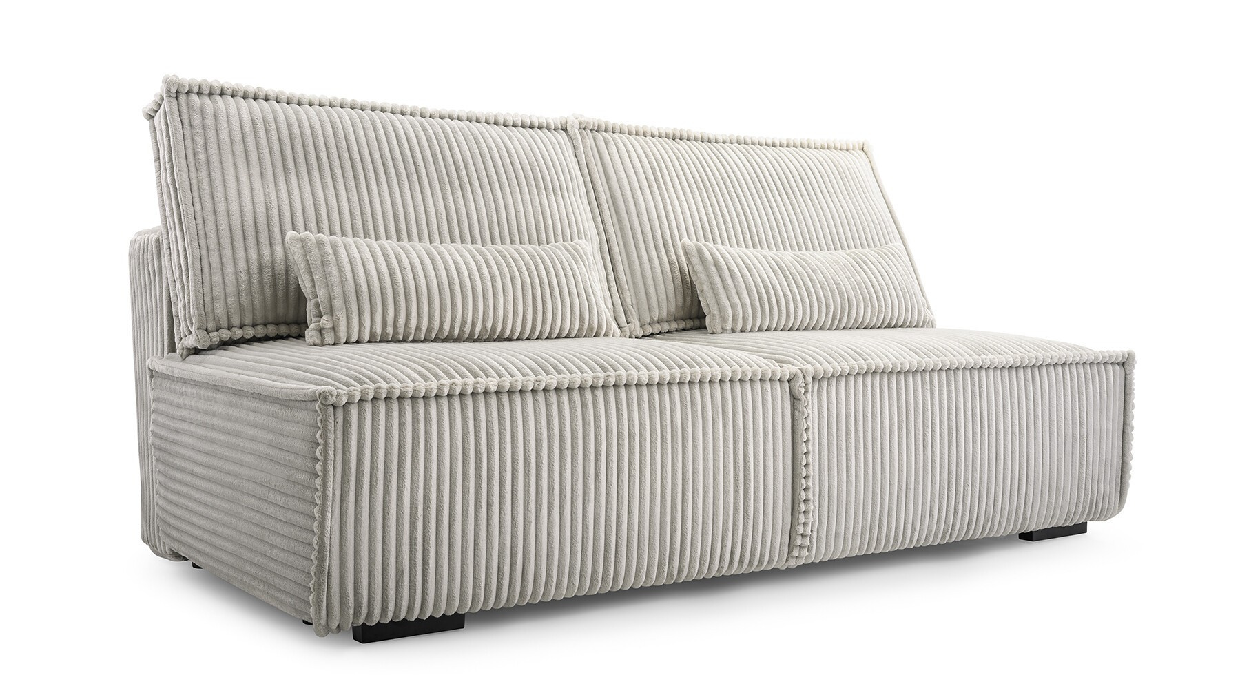 Díky svému kompaktnímu tvaru a absenci bočnic je pohovka ideální do malých obývacích pokojů a zároveň poskytuje prostor k sezení pro tři osoby.