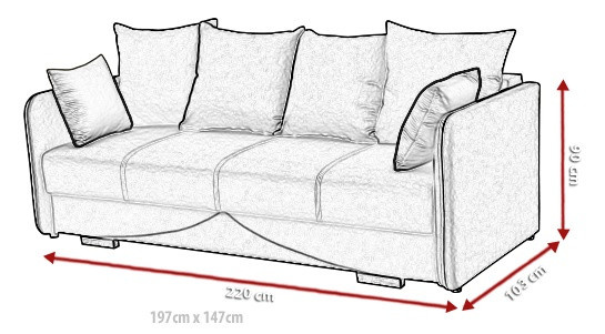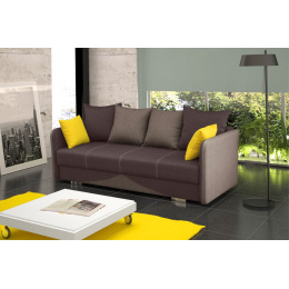 Moderní pohovka se snadným rozkladem a úložným prostorem. Pohodlné sezení Vám zajistí kombinace pružin faliste a bonell s kvalitní PUR pěnou. Jednoduchým rozkladem pomocí automatu vznikne lůžko vhodné k příležitostnému spaní. Pohovku dodáváme v několika barevných provedeních, které také naleznete v naší nabídce. V ceně pohovky jsou 4 velké opěrné polštáře a dva malé žluté polštářky. Ostatní vyobrazené dekorace nejsou v ceně.