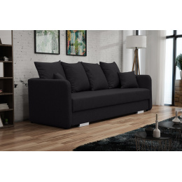 IVET je moderně uspořádaná třímístná pohovka, jejíž opěradlo je zakončeno měkkými polštáři. Tento kus nábytku, který se skvěle hodí do obývacího pokoje nebo obývacího pokoje, stojí na nízkých chromovaných nožkách, které zdůrazňují moderní provedení konstrukce. Pohovka IVET s bočnicemi je vybavena zásobníkem na lůžkoviny pro uložení přikrývek, polštářů nebo peřin a také funkcí spaní, díky níž lze pohovku rozložit. Při výrobě byla stylová pohovka doplněna o automatické rozkládaní, díky níž je velmi snadná i pro ty menší uživatele. Nábytek lze čalounit látkou nebo koženkou v široké škále barev, které jsou k dispozici. Pohovka IVET je volně stojící kus nábytku, takže zadní část pohovky je také čalouněná. Třímístná pohovka do obývacího pokoje je vyplněna vlnitými pružinami, které jí zajistí správnou pružnost - nebude ani příliš tvrdá, ani příliš měkká, takže ani každodenní používání na ní nezpůsobí nevzhledné promáčkliny.