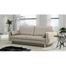 Pohovka Kelly je krásná a elegantní pohovka, která výborně zapadne do každého interiéru. Pohovka je velmi pohodlná a praktická. Praktickou stránkou pohovky je možnost rozložení - jednoduchým rozložením pomocí automatu vznikne dostatečně prostorné lůžko občasnému přespání Vaší návštěvy a samozřejmostí je také nepostradatelný úložný prostor. Pohodlí při sezení zajišťuje výpň sedáku z vlnitých pružin v kombinaci s pružinami bonell a kvalitní PUR pěnou. Pohovka je celočalouněná, takže ji můžete umístit i do prostoru. Výborně se hodí do obývacího pokoje, do pracovny či pokoje pro hosty. Pohovku nabízíme v několika trendy barvách. Vyobrazené dopňky a dekorace nejsou v ceně. Zobrazení barev produktu na fotograii se může nepatrně lišit od skutečnosti.