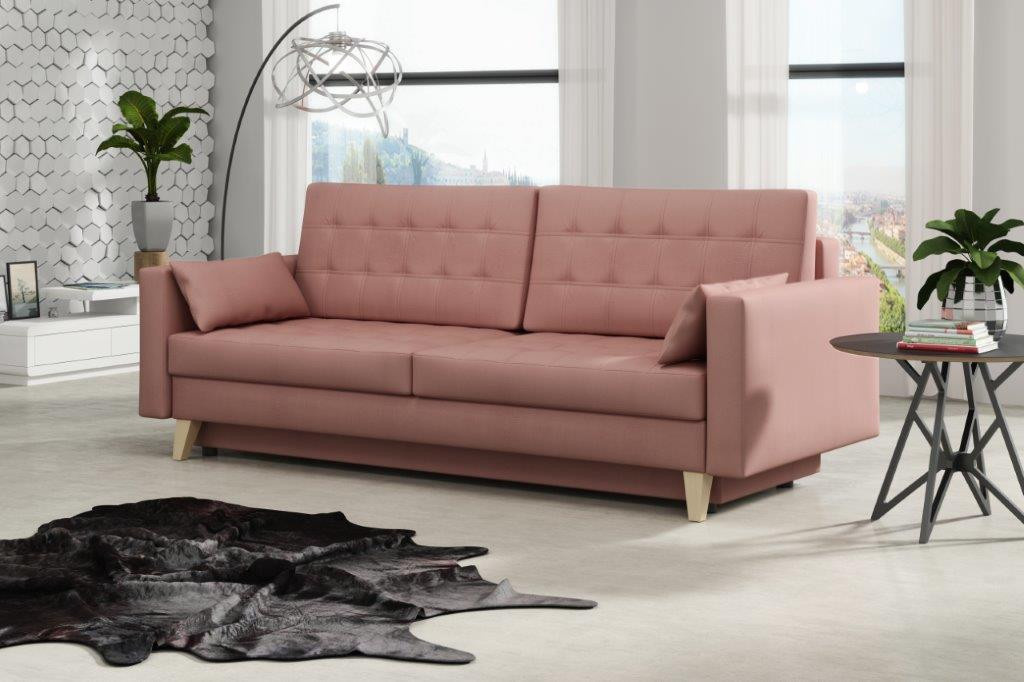 Pohovka Kelly je krásná a elegantní pohovka, která výborně zapadne do každého interiéru. Pohovka je velmi pohodlná a praktická. Praktickou stránkou pohovky je možnost rozložení - jednoduchým rozložením pomocí automatu vznikne dostatečně prostorné lůžko občasnému přespání Vaší návštěvy a samozřejmostí je také nepostradatelný úložný prostor. Pohodlí při sezení zajišťuje výpň sedáku z vlnitých pružin v kombinaci s pružinami bonell a kvalitní PUR pěnou. Pohovka je celočalouněná, takže ji můžete umístit i do prostoru. Výborně se hodí do obývacího pokoje, do pracovny či pokoje pro hosty. Pohovku nabízíme v několika trendy barvách. Vyobrazené dopňky a dekorace nejsou v ceně. Zobrazení barev produktu na fotograii se může nepatrně lišit od skutečnosti.