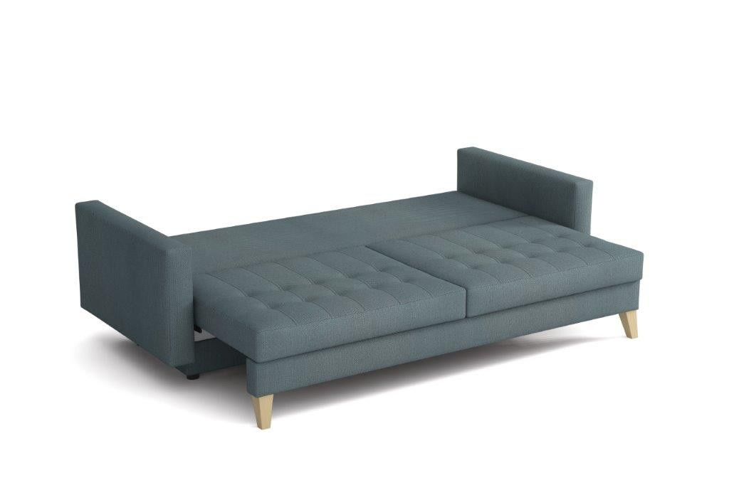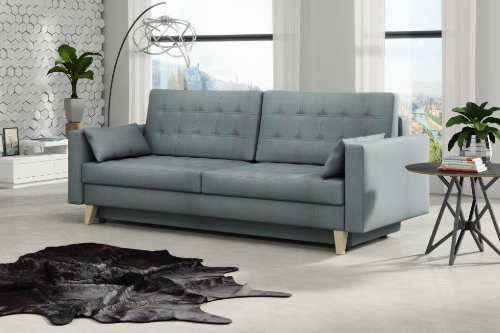 Pohovka Kelly je krásná a elegantní pohovka, která výborně zapadne do každého interiéru. Pohovka je velmi pohodlná a praktická. Praktickou stránkou pohovky je možnost rozložení - jednoduchým rozložením pomocí automatu vznikne dostatečně prostorné lůžko občasnému přespání Vaší návštěvy a samozřejmostí je také nepostradatelný úložný prostor. Pohodlí při sezení zajišťuje výpň sedáku z vlnitých pružin v kombinaci s pružinami bonell a kvalitní PUR pěnou. Pohovka je celočalouněná, takže ji můžete umístit i do prostoru. Výborně se hodí do obývacího pokoje, do pracovny či pokoje pro hosty. Pohovku nabízíme v několika trendy barvách. Vyobrazené dopňky a dekorace nejsou v ceně. Zobrazení barev produktu na fotograii se může nepatrně lišit od skutečnosti.