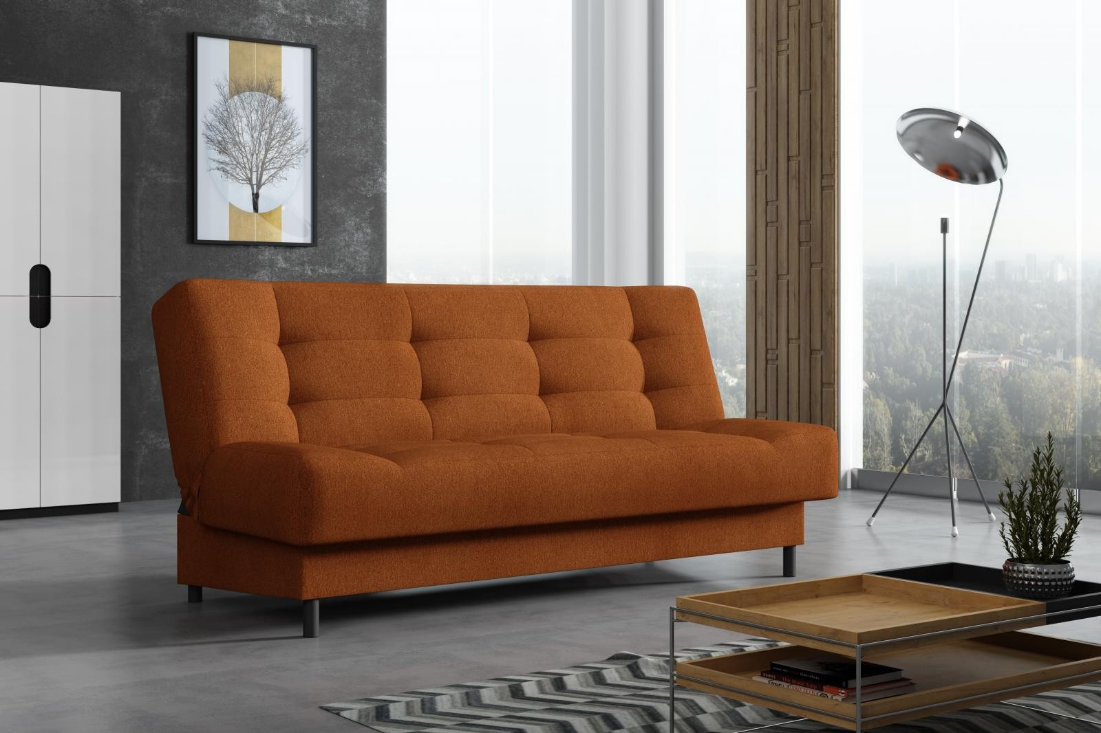 Pohovka Living je příjemným spojením elegance, funkčnosti a příznivé ceny. Je vyrobená v jednoduchém nadčasovém designu, který se hodí do každého inferiéru. Umístit ji můžete do obývacího pokoje, ale je také vhodná např. do studentského pokoje, pracovny, nebo hostinského pokoje. Pohovka je rozkládací a samozřejmostí je i nepostradatelný úložný prostor. Jednoduchým rozložením pomocí systému klik-klak vznikne lůžko k občasnému přespání. Z důvodu tohoto rozkladu je pohovka vzadu očalouněna pouze do krycí čalounické látky. Vybrat si můžete z několika trendy odstínů. Vyobrazené doplňky a dekorace nejsou v ceně. Úvodní fotografie je ilustrační. Pohovka bude dodána v potahové látce, jejíž vzorek je vyobrazen v doplňkových fotografiích.