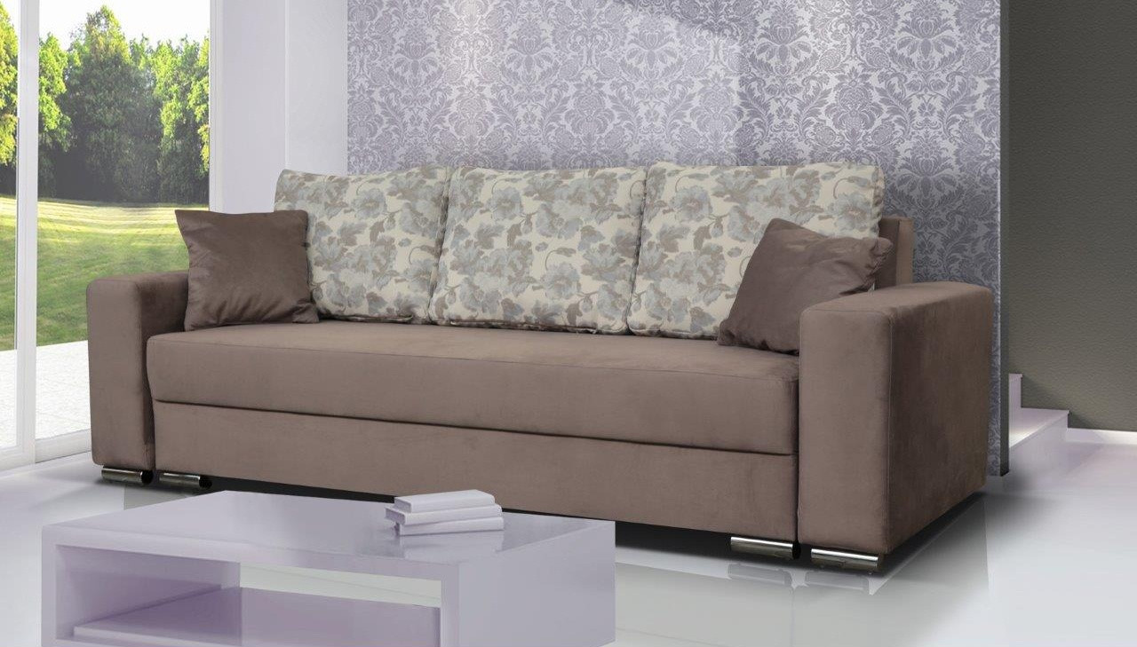 Pohovka Margott v jednoduchém nadčasovém designu vyniká elegancí a pohodlím a hodí se do každého interiéru. Kombinace jednobarevné látky se vzorovanými polštáři dodává nádech romantiky. Pohovka je rozkládací a samozřejmostí je i praktický úložný prostor na lůžkoviny. Výplň sedáku tvoří kombinace pružin bonell s kvalitní PUR pěnou. Jednoduchým rozložením vznikne dostatečně velké lůžko k občasnému přespání Vaší návštěvy. V ceně pohovky jsou tři velké opěrné polštáře a dva melé dekorační polštářky. Ostatní vyobrazené dekorace nejsou v ceně.
