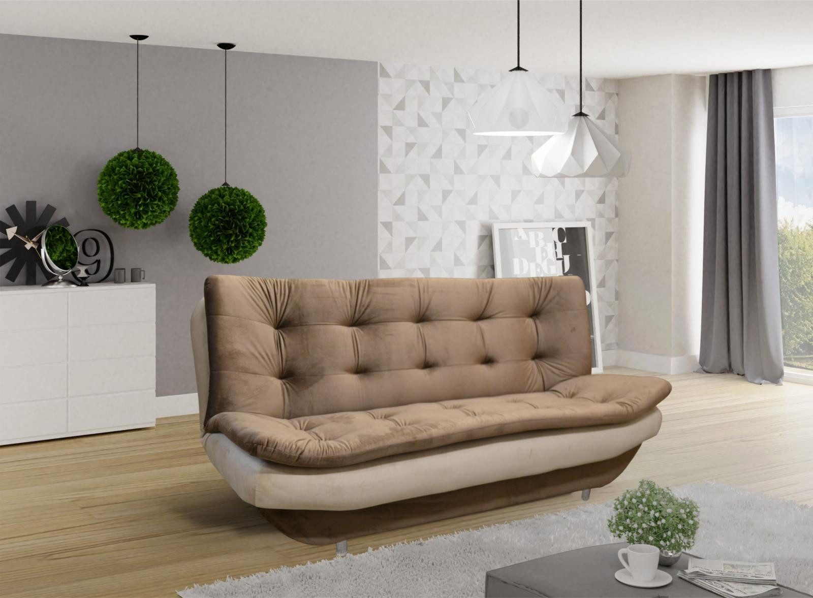 Pohovka Omar je vyrobená v jednoduchém a zároveň moderním designu, který se hodí do každého interiéru a skvěle ho doplní. Díky svým rozměrům nezabere moc místa a je vhodná i do malých pokojů. Výplň sedáku tvoří kombinace vlnitých pružin s kvalitní PUR pěnou. Pohovka je rozkládací a samozřejmostí je i nepostradatelný úložný prostor. Jednoduchým rozložením pomocí systému klik-klak vznikne lůžko k občasnému přespání. Vybrat si můžete z několika trendy odstínů. Ostatní vyobrazené doplňky a dekorace nejsou v ceně.