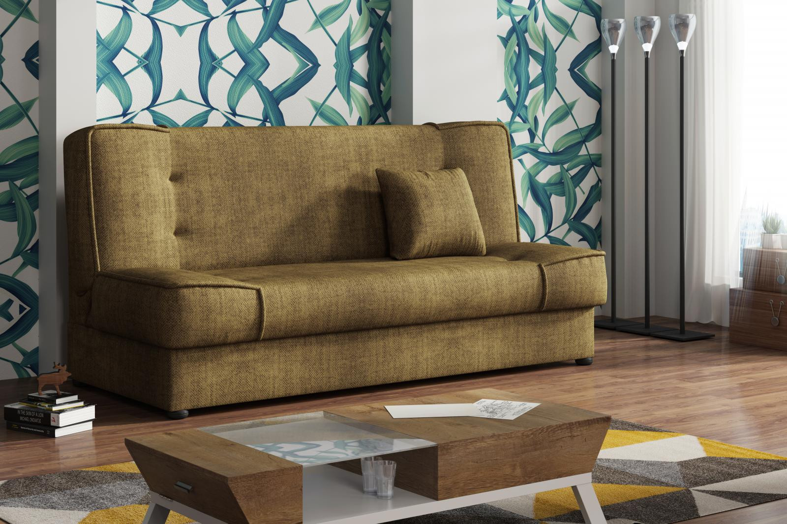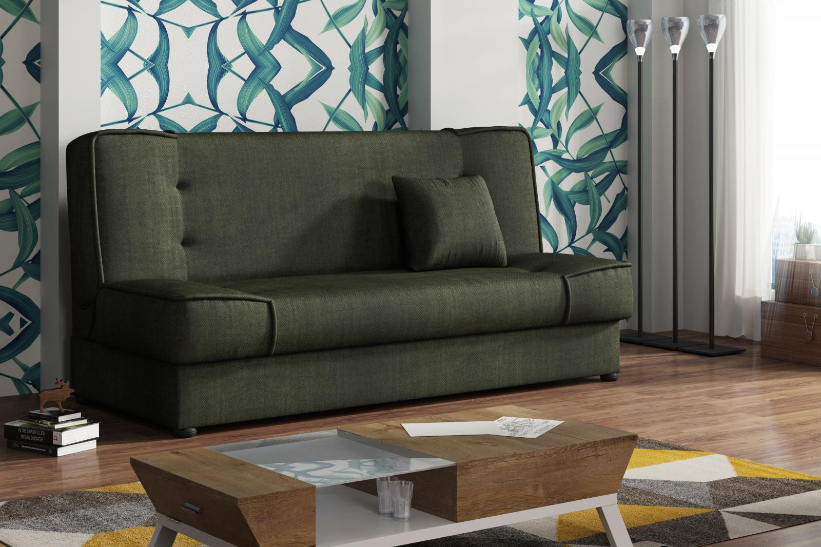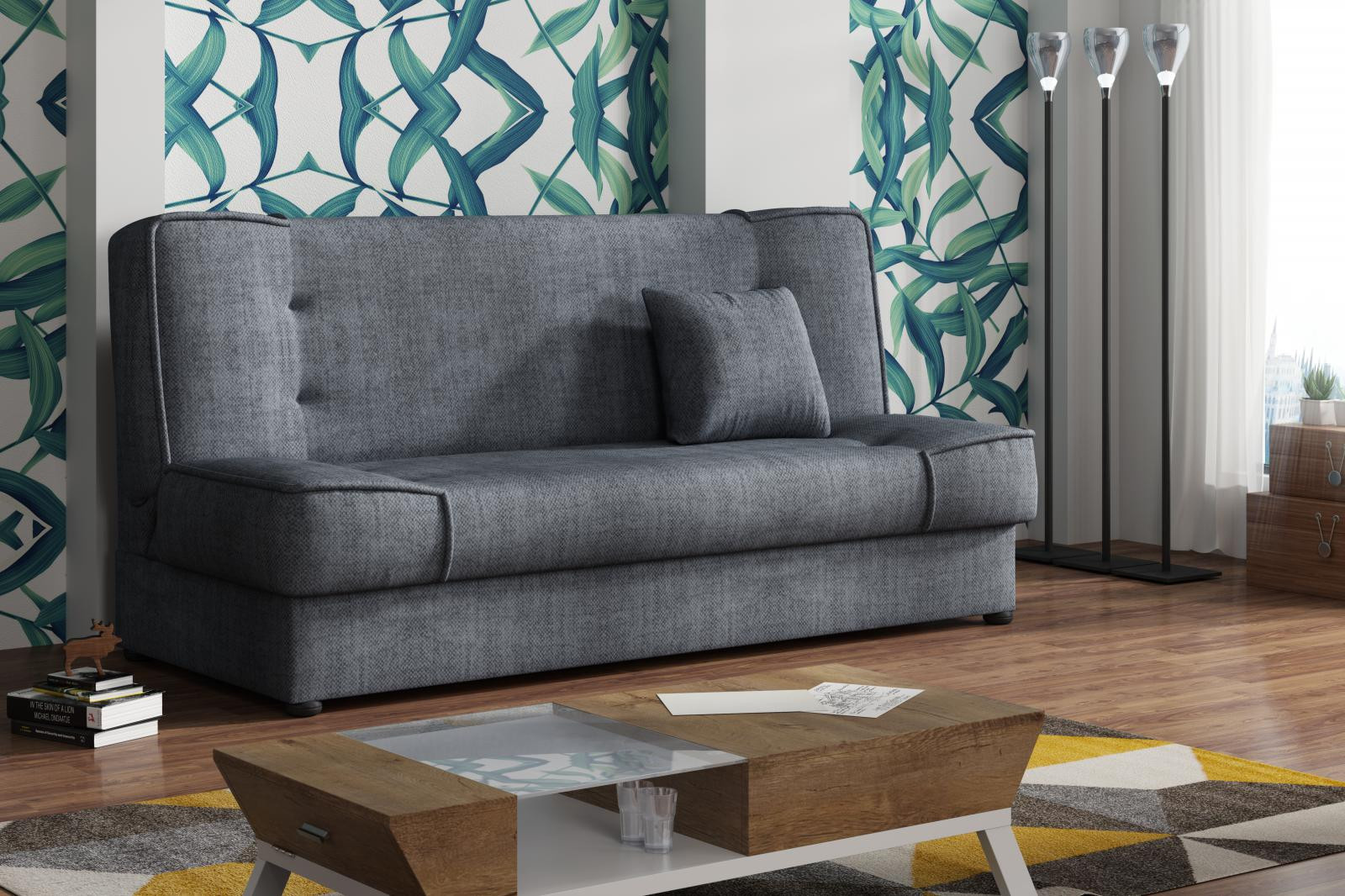 Pohovka Rallye je vyrobená v jednoduchém a nadčasovém designu. Hodí se do moderního i klasického interiéru a je vhodná i do malých pokojů. Pohovka je rozkládací a má i praktický úlořný prostor. Výplň sedáku tvoří kombinace pružin s kvalitní PUR pěnou. Jednoduchým rozložením pomocí systému klik-klak, vznikne lůžko k občasnému přespání Vaší návštěvy. Pohovku nabízíme v několika trendy barvách a v ceně je malý dekorační polštářek. Ostatní vyobrazené dekorace nejsou v ceně.