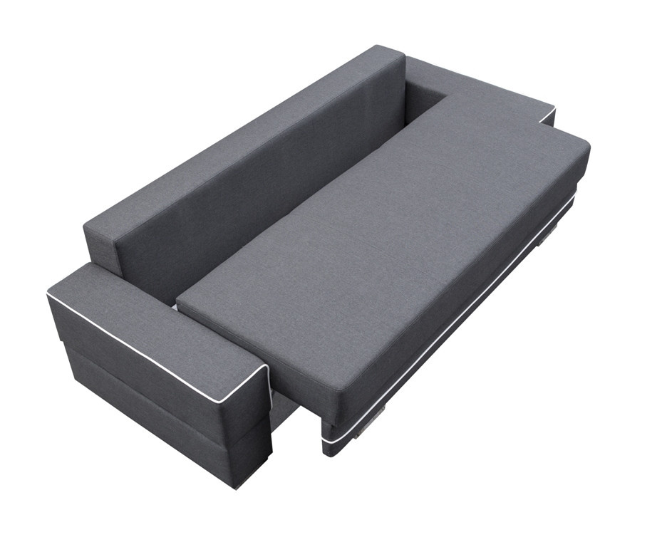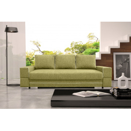 SAMANTA A je moderní rozkládací pohovka, která se přes den stane místem odpočinku pro celou rodinu, zatímco v noci se může proměnit v postel a zajistit bezpečný a pohodlný spánek. Kromě funkce spaní je nábytek vybaven úložným prostorem na lůžkoviny, který umožňuje ukládat přikrývky, peřiny a polštáře na jednom místě. Aby bylo rozkládání pohovky snadné a bezproblémové, byla doplněna o automatickou pomůcku pro rozkládání. Dřevěný rám třímístné pohovky zaručuje odpovídající odolnost a pevnost kusu nábytku - sedák a opěrák jsou vyplněny vlnitými pružinami a bonellovými pružinami, díky nimž si kus nábytku zachová odpovídající pružnost a nebudou na něm nevzhledné promáčkliny. Čalouněný kus nábytku stojí na chromových nožkách, které mu dodávají originální charakter. Volně stojící kus nábytku je celý čalouněný látkou, jejíž barvy si můžete vybrat. Zajímavým akcentem pohovky SAMANTA A je stylové prošívání na okrajích polštářů umístěných na opěradle a na konstrukci pohovky.