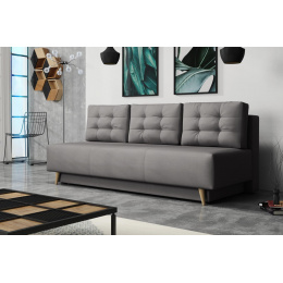 Pohovka Sebastian je elegantním kouskem sedacího nábytku s nádechem RETRO designu a výborně zapadne do každého interiéru. Retro design podtrhují zešikmené dřevěné nohy a látkové knoflíky na opěrných polštářích. Pohovka je rozkládací a samozřejmostí je i nepostradatelný úložný prostor. Jednoduchým rozložením pomocí automatu vznikne dostatečně prostorné lůžko občasnému přespání Vaší návštěvy. Výplň sedáku tvoří pružiny bonell a kvalitní PUR pěna. Pohovka je celočalouněná, takže ji můžete umístit i do prostoru. Výborně se hodí do obývacího pokoje, do pracovny či pokoje pro hosty. Pohovku nabízíme v několika trendy barvách. Vyobrazené doplňky a dekorace nejsou v ceně. Zobrazení barev produktu na fotografii se může nepatrně lišit od skutečnosti.