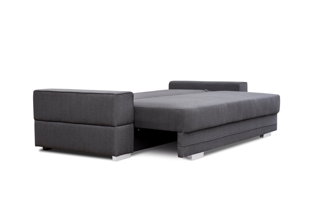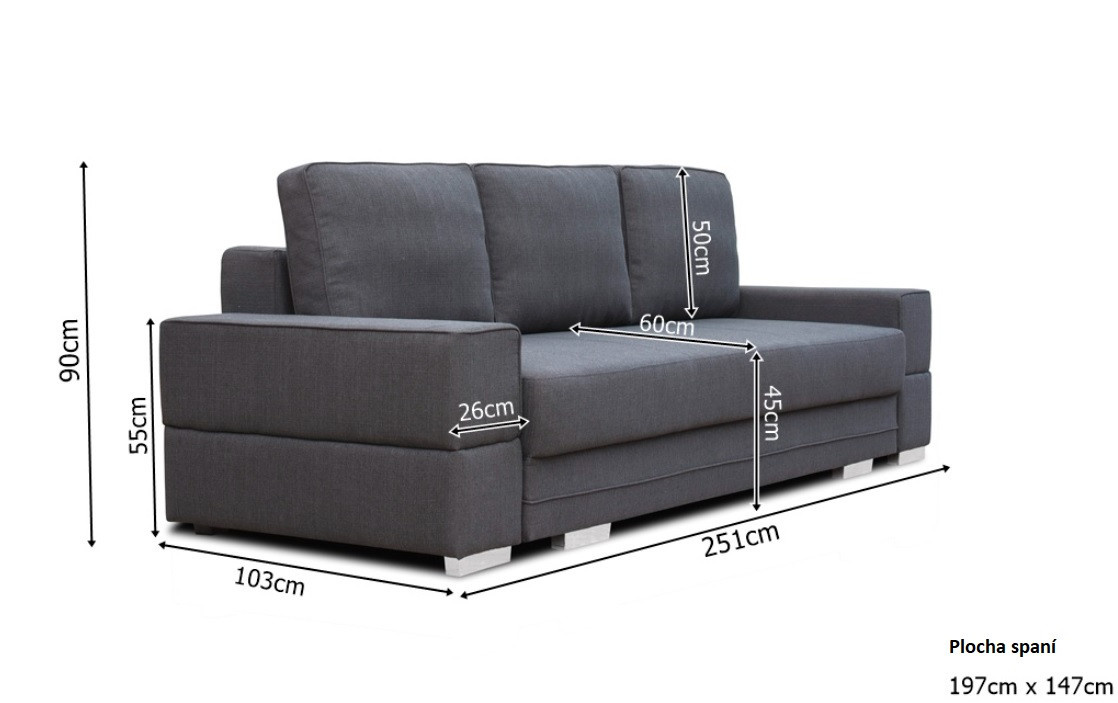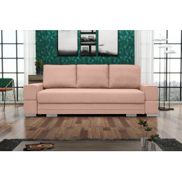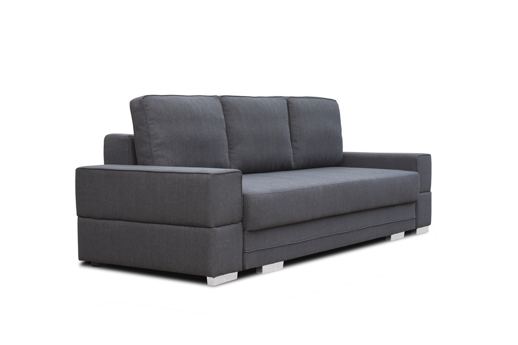 SOFIA je třímístná pohovka, díky níž můžeme prakticky a zároveň velmi moderně zařídit volný prostor obývacího pokoje, zasedací místnosti nebo třeba soukromé pracovny. Jednoduchý tvar pohovky je vybaven tvarovanými područkami a třemi polštáři umístěnými na opěradle. Rozložená pohovka je vyplněna vlnitými pružinami a pěnou T-30 na opěradle a sedáku, díky čemuž si kus nábytku zachová patřičnou pružnost a nevzniknou na něm nevzhledné deformace. Dřevěný rám pohovky zajišťuje odolnost a odpovídající pevnost konstrukce, kterou doplňují chromované nožky. Volně stojící pohovka SOFIA je čalouněná látkou, jejíž barvy lze zvolit podle individuálních preferencí a vzhledu zařízené místnosti. Díky čalouněnému opěradlu může být SOFIA umístěna jak u stěny, tak uprostřed prostorné místnosti. Je třeba mít na paměti, že tento kus nábytku je vybaven úložným prostorem na lůžkoviny a má funkci spaní. Pohovka SOFIA vám zajistí bezpečný a zároveň pohodlný odpočinek.