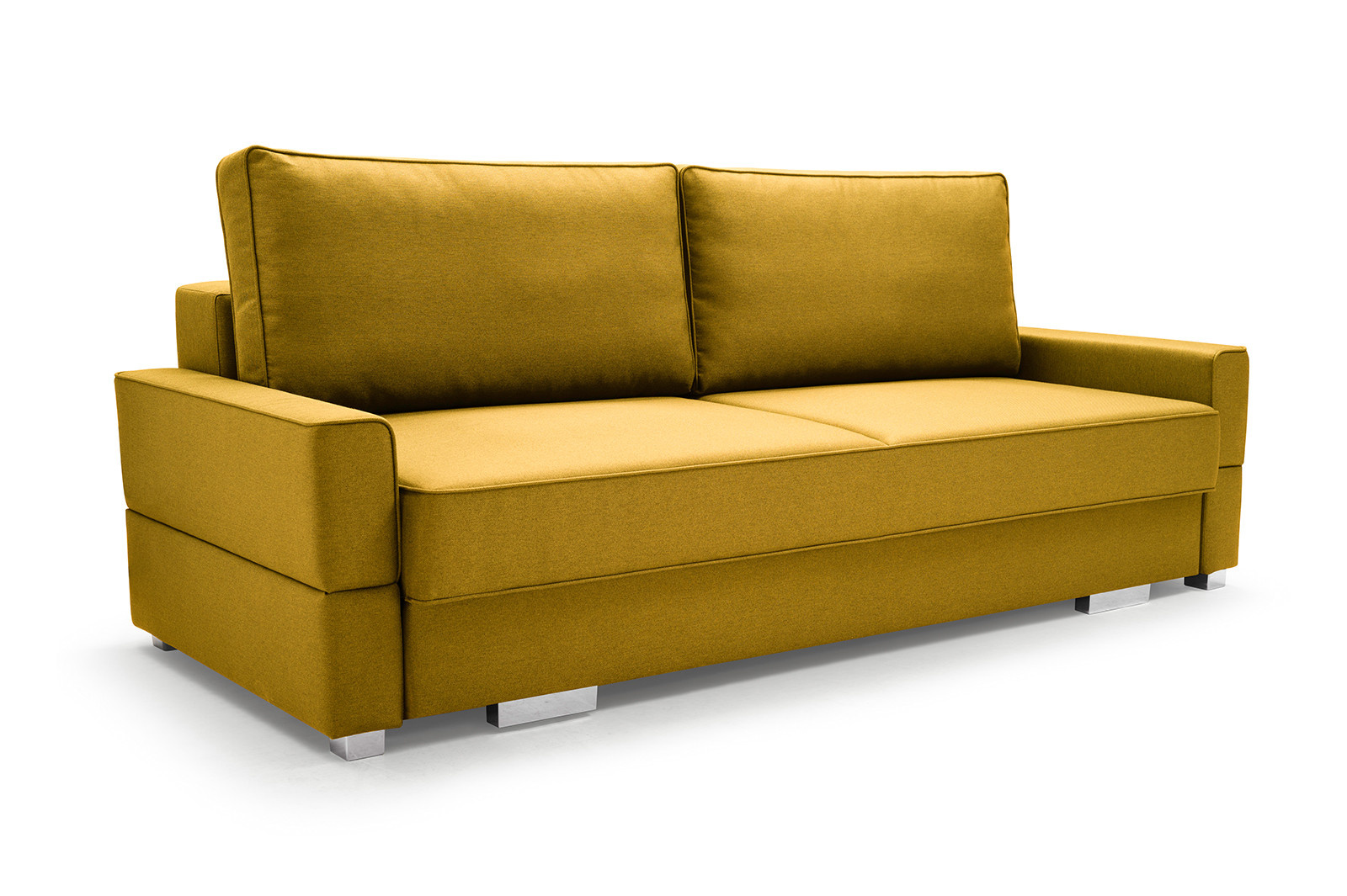 Dvoumístná pohovka SUZANA je čalouněná pohovka, jejíž barvy si lze vybrat z široké škály barev podle individuálních preferencí a vzhledu uspořádaného interiéru. Stylová pohovka stojí na chromových nožkách, které dodávají konstrukci nádech modernosti. Pohovka s bočnicemi je vybavena funkcí spaní, díky níž lze tento kus nábytku kdykoli rozložit - bude praktickým kusem nábytku pro přespání hostů i příležitostným lůžkem, pokud bude umístěna v obývacím pokoji. SUZANA je vybavena prostorným úložným prostorem na lůžkoviny, ve kterém jsou všechny přikrývky, peřiny a polštáře na jednom místě. Sedák a dva polštáře na opěradle jsou vyrobeny z vlnitých pružin v kombinaci s pěnou T-30 - použité materiály zajistí nábytku odpovídající pružnost. Sedadlo se pod uživatelem nepropadává, ani se na něm nevytvoří promáčkliny nebo deformace. Moderní pohovka SUZANA bude nejen pohodlným nábytkem do obývacího pokoje, ale také prvkem, který podtrhne nadčasový charakter uspořádání obývacího pokoje.