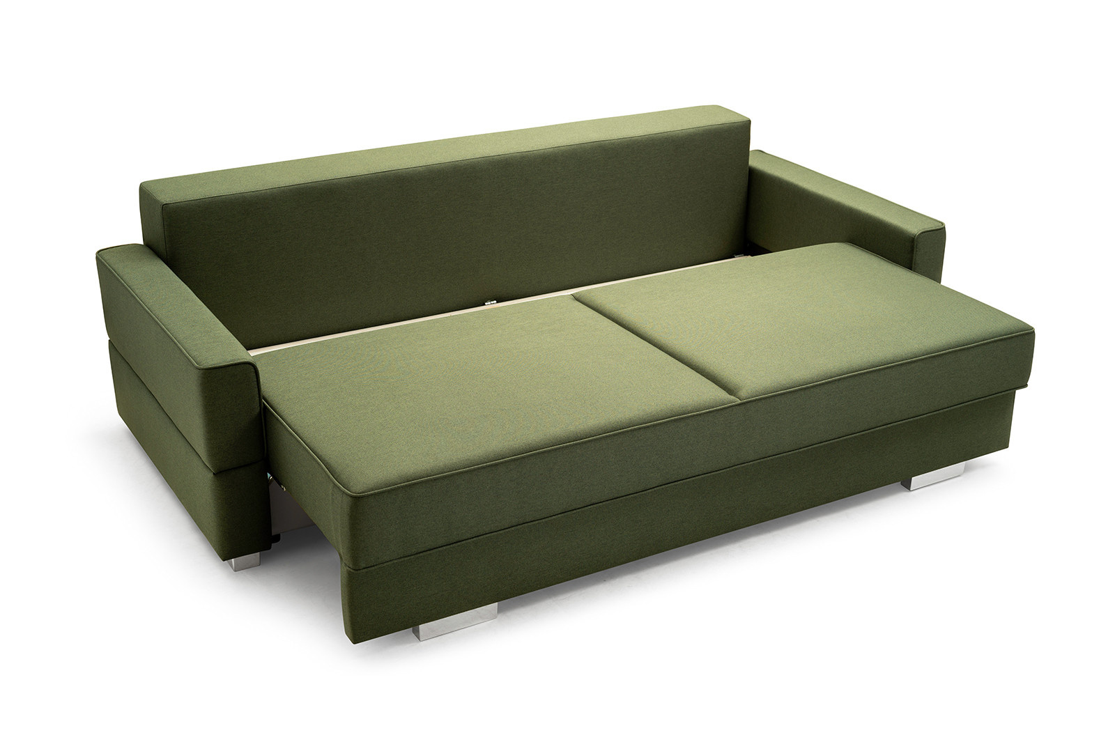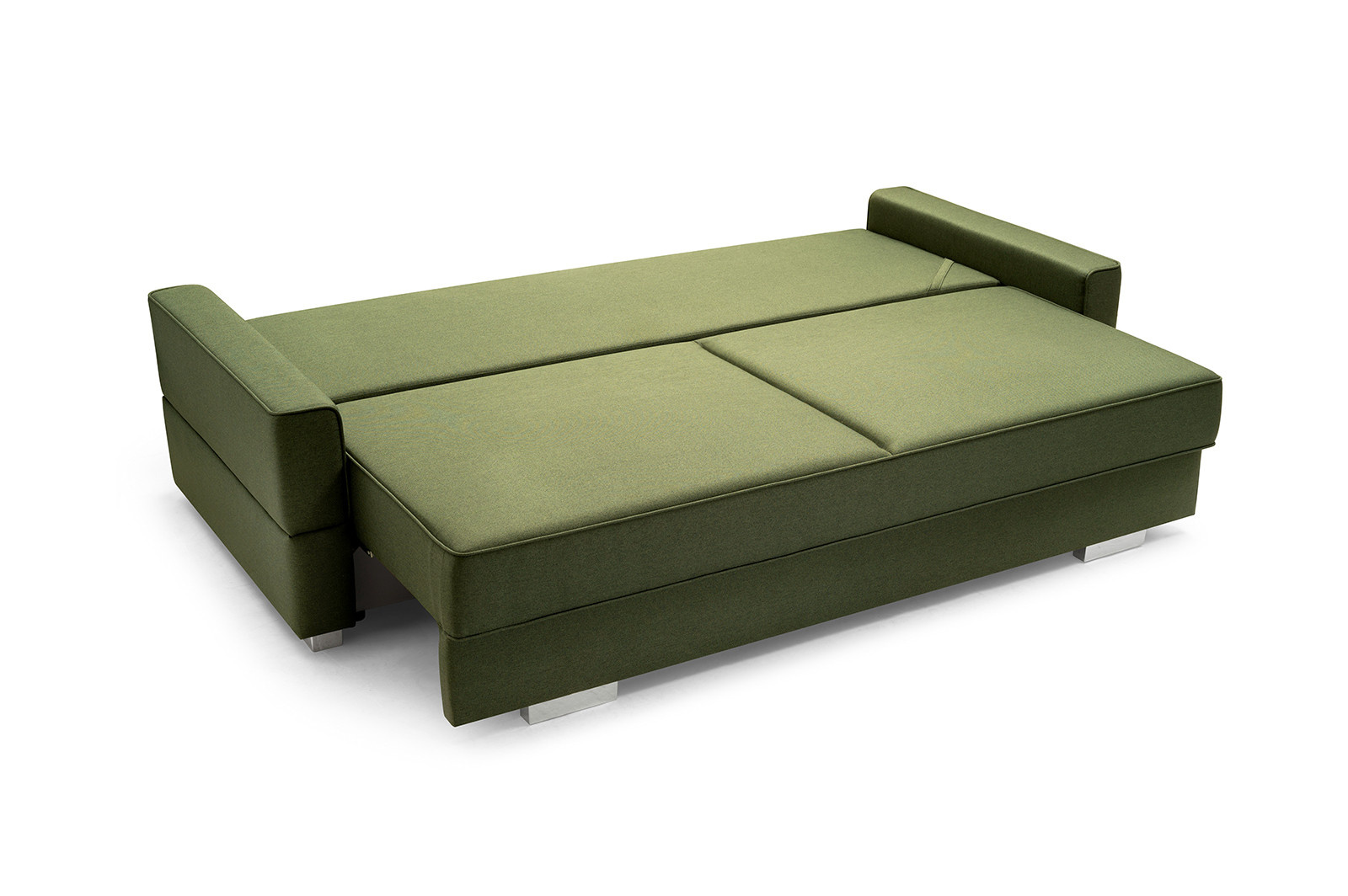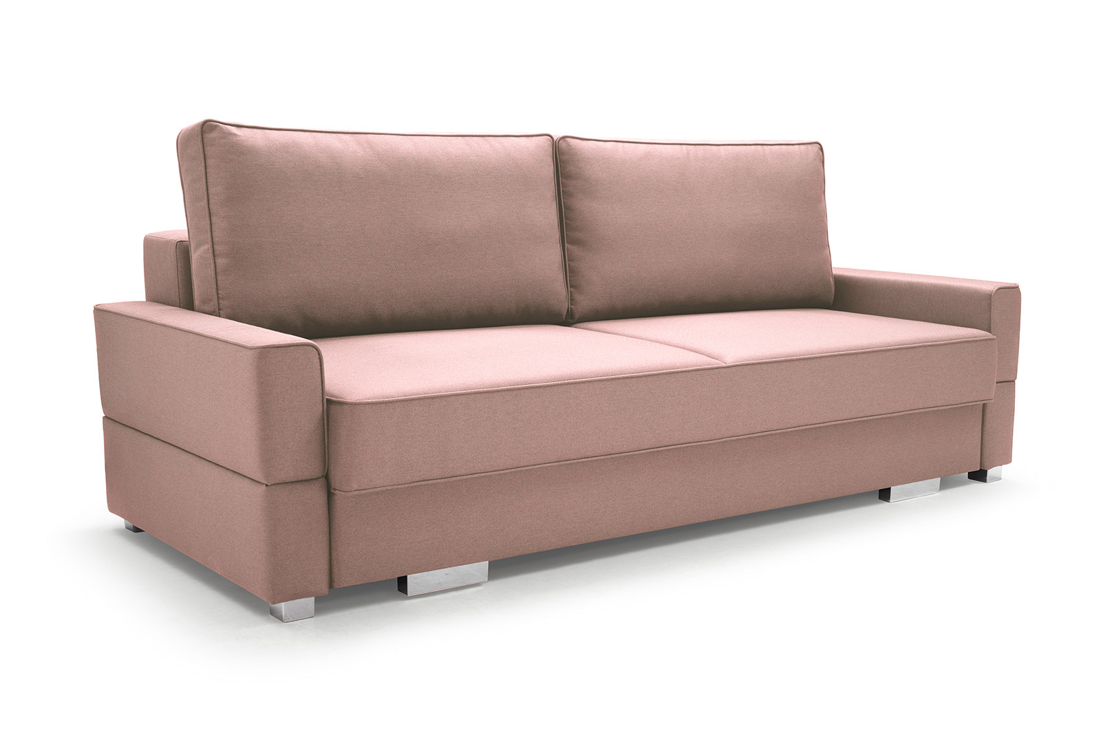 Dvoumístná pohovka SUZANA je čalouněná pohovka, jejíž barvy si lze vybrat z široké škály barev podle individuálních preferencí a vzhledu uspořádaného interiéru. Stylová pohovka stojí na chromových nožkách, které dodávají konstrukci nádech modernosti. Pohovka s bočnicemi je vybavena funkcí spaní, díky níž lze tento kus nábytku kdykoli rozložit - bude praktickým kusem nábytku pro přespání hostů i příležitostným lůžkem, pokud bude umístěna v obývacím pokoji. SUZANA je vybavena prostorným úložným prostorem na lůžkoviny, ve kterém jsou všechny přikrývky, peřiny a polštáře na jednom místě. Sedák a dva polštáře na opěradle jsou vyrobeny z vlnitých pružin v kombinaci s pěnou T-30 - použité materiály zajistí nábytku odpovídající pružnost. Sedadlo se pod uživatelem nepropadává, ani se na něm nevytvoří promáčkliny nebo deformace. Moderní pohovka SUZANA bude nejen pohodlným nábytkem do obývacího pokoje, ale také prvkem, který podtrhne nadčasový charakter uspořádání obývacího pokoje.