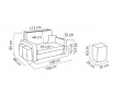 rozměry: šířka 138 cm, výška 85 cm, hloubka 98 cm, taburet: 35x35 cm / výška 40 cm