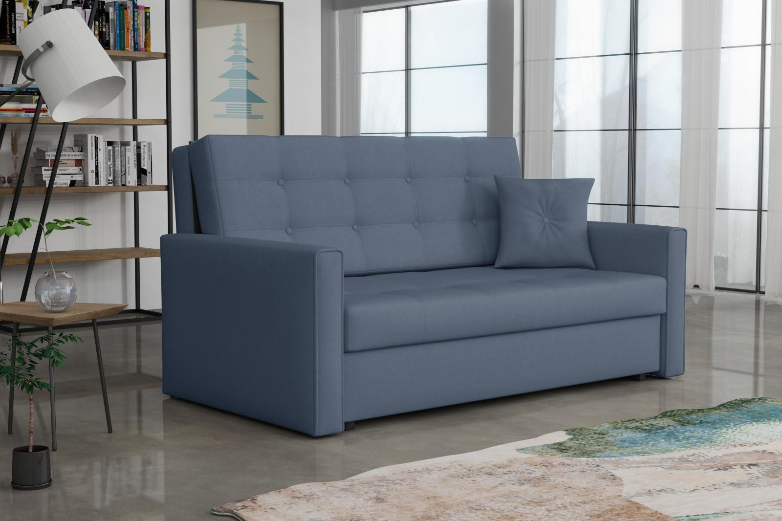Rozkládací pohovka Vivian je díky svým rozměrům vhodná i do menších pokojů. Je vyrobena v jednoduchém a zároveň elegantním designu, který se hodí do všech interiérů. Můžete ji umístit do obývacího, dětského, studentského, nebo hostinského pokoje. Jednoduchým rozložením pomocí automatu, získáte lůžko k příležitostnému přespání Vaší návštěvy. Výplň sedáku tvoří vlnité pružiny v kombinaci s PUR pěnou. Pohovka je potažena kvalitní látkou a nabízíme ji v několika trendy odstínech. Pohovka disponuje i nepostradatelným úložným prostorem, který využijete např. na deku a polštář. V ceně pohovky je 1 dekorační polštář. Ostatní vyobrazené dekorace nejsou v ceně.