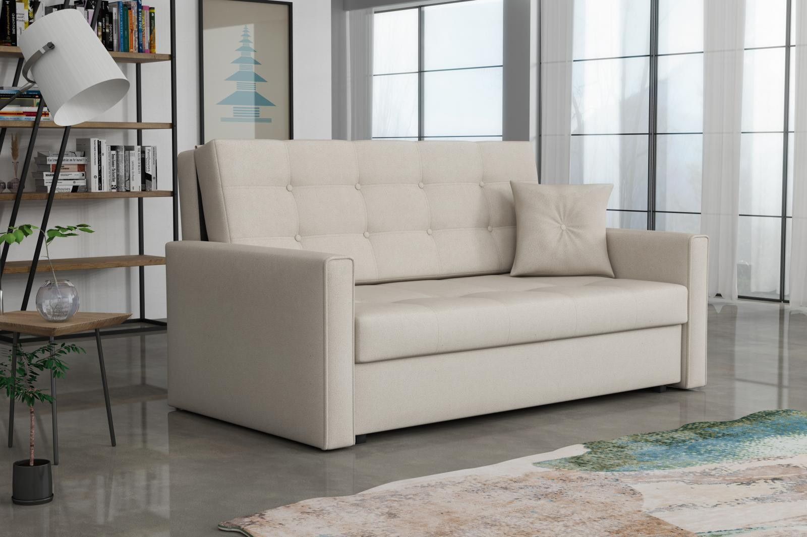 Rozkládací pohovka Vivian je díky svým rozměrům vhodná i do menších pokojů. Je vyrobena v jednoduchém a zároveň elegantním designu, který se hodí do všech interiérů. Můžete ji umístit do obývacího, dětského, studentského, nebo hostinského pokoje. Jednoduchým rozložením pomocí automatu, získáte lůžko k příležitostnému přespání Vaší návštěvy. Výplň sedáku tvoří vlnité pružiny v kombinaci s PUR pěnou. Pohovka je potažena kvalitní látkou a nabízíme ji v několika trendy odstínech. Pohovka disponuje i nepostradatelným úložným prostorem, který využijete např. na deku a polštář. V ceně pohovky je 1 dekorační polštář. Ostatní vyobrazené dekorace nejsou v ceně.