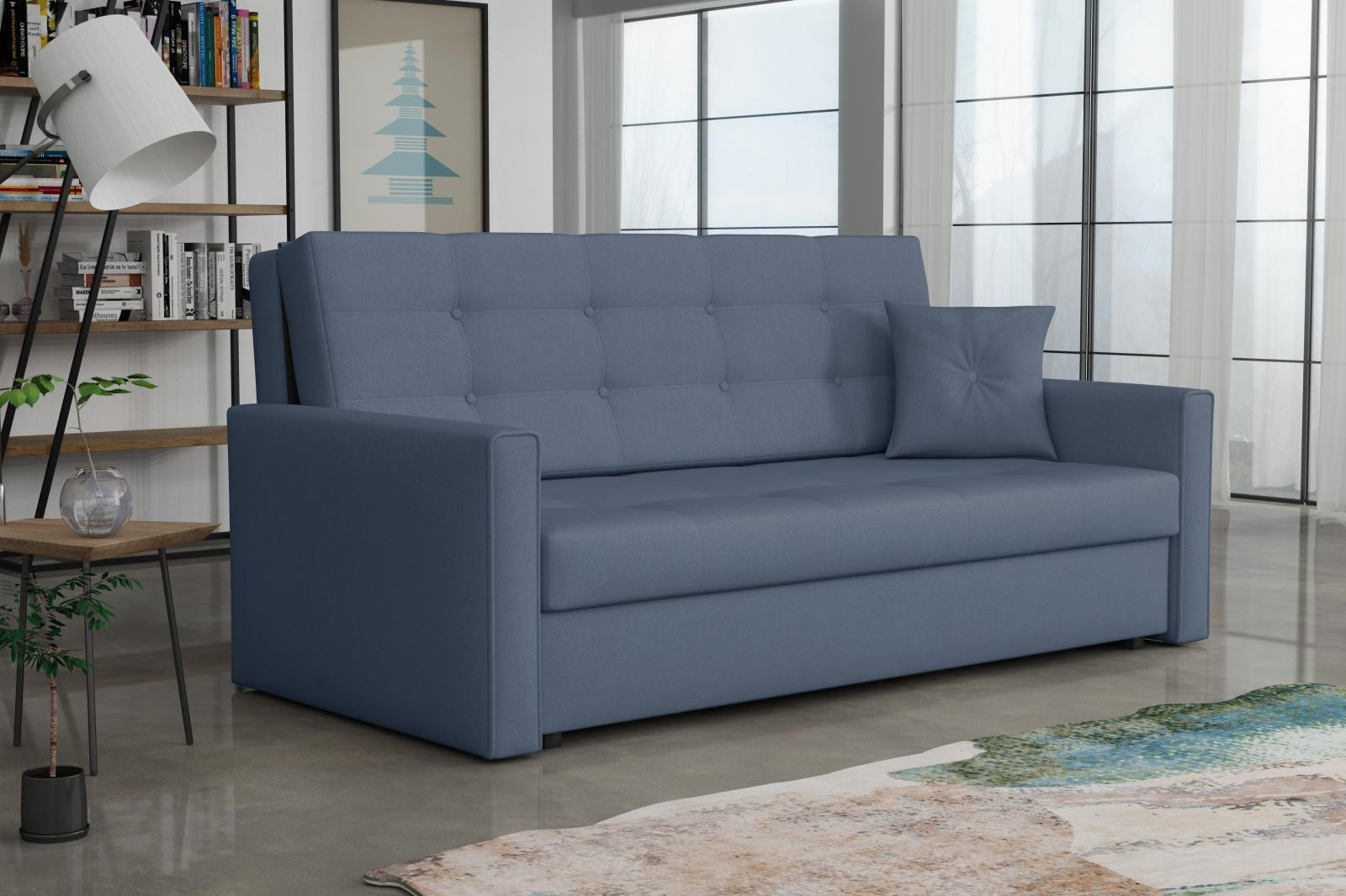 Rozkládací pohovka Vivian je díky svým rozměrům vhodná i do menších pokojů. Je vyrobena v jednoduchém a zároveň elegantním designu, který se hodí do všech interiérů. Můžete ji umístit do obývacího, dětského, studentského, nebo hostinského pokoje. Jednoduchým rozložením pomocí automatu, získáte lůžko k příležitostnému přespání Vaší návštěvy. Výplň sedáku tvoří vlnité pružiny v kombinaci s PUR pěnou. Pohovka je potažena kvalitní látkou a nabízíme ji v několika trendy odstínech. Pohovka disponuje i nepostradatelným úložným prostorem, který využijete např. na deku a polštář. V ceně pohovky je 1 dekorační polštář. Ostatní vyobrazené dekorace nejsou v ceně.