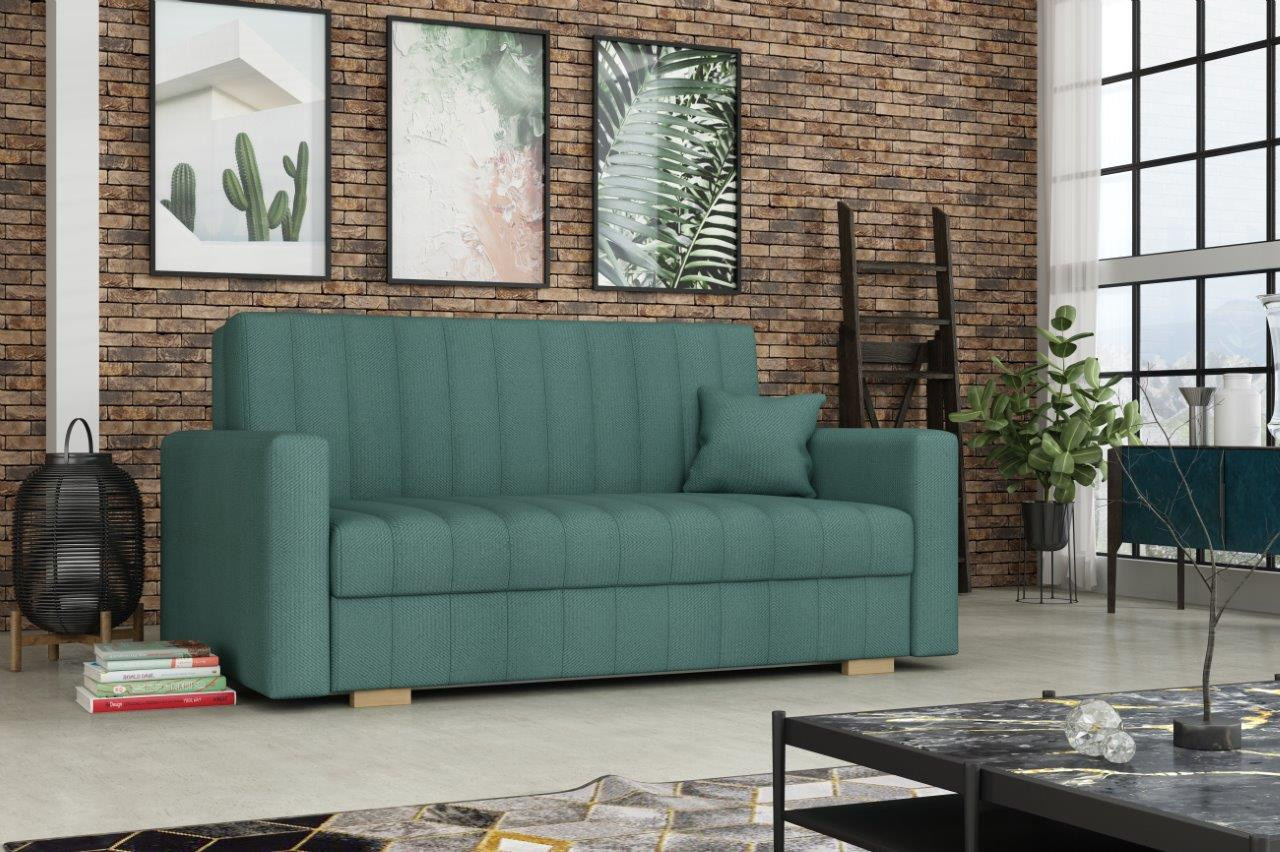 Rozkládací pohovka Vivian je díky svým rozměrům vhodná i do menších pokojů. Své uplatnění najde nejen v obývacím pokoji, ale také v dětském, studentském, nebo hostinském pokoji. Jednoduchým rozložením pomocí automatu, získáte lůžko k příležitostnému přespání Vaší návštěvy. Výplň sedáku tvoří vlnité pružiny v kombinaci s PUR pěnou. Pohovka je potažena kvalitní látkou a nabízíme ji v několika trendy odstínech. Pohovka disponuje i nepostradatelným úložným prostorem, který využijete např. na deku a polštář. V ceně pohovky je 1 dekorační polštář. Ostatní vyobrazené dekorace nejsou v ceně. Zobrazení barev na fotograii se může od skutečnosti lišit.