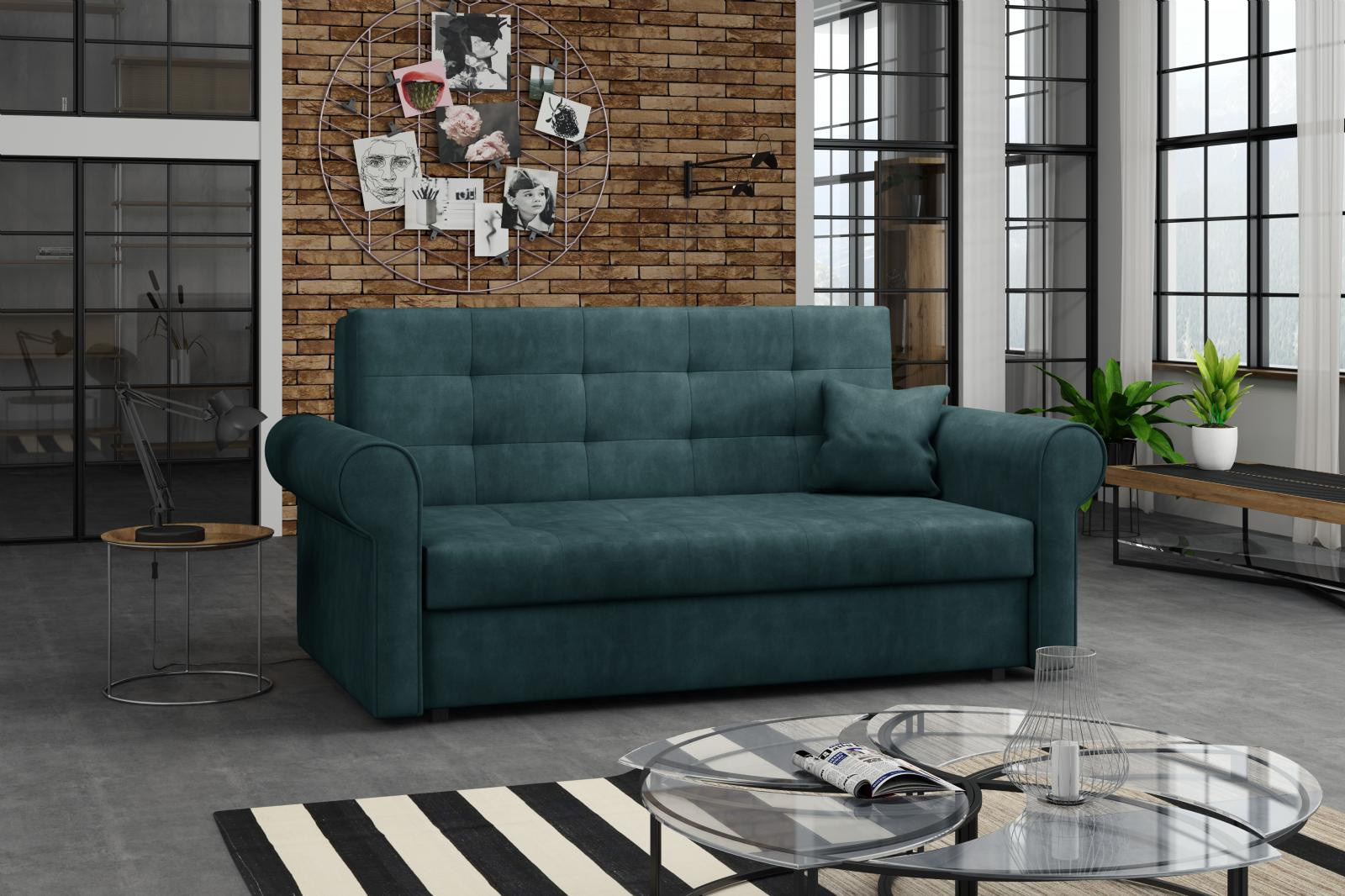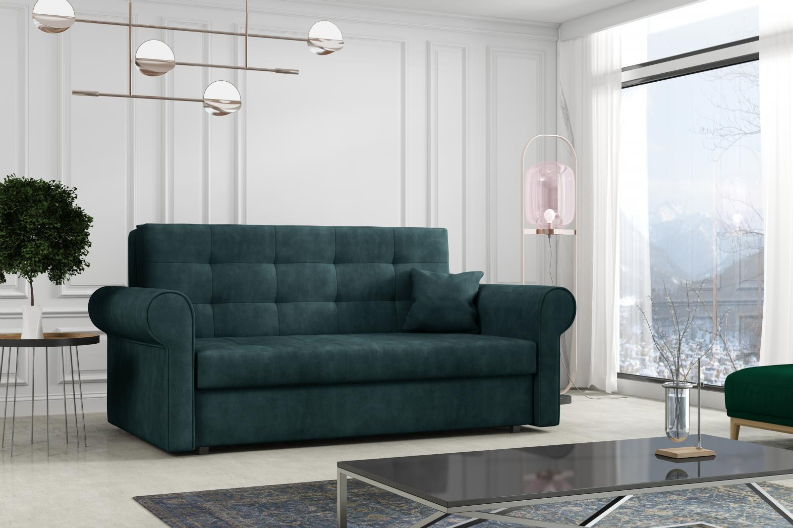 Rozkládací pohovka Vivian je díky svým rozměrům vhodná i do menších pokojů. Své uplatnění najde nejen v obývacím pokoji, ale také v dětském, studentském, nebo hostinském pokoji. Jednoduchým rozložením pomocí automatu, získáte lůžko k příležitostnému přespání Vaší návštěvy. Výplň sedáku tvoří vlnité pružiny v kombinaci s PUR pěnou. Pohovka je potažena kvalitní látkou a nabízíme ji v několika trendy odstínech. Pohovka disponuje i nepostradatelným úložným prostorem, který využijete např. na deku a polštář. V ceně pohovky je 1 dekorační polštář. Ostatní vyobrazené dekorace nejsou v ceně. Zobrazení barev na fotografii se může od skutečnosti lišit.