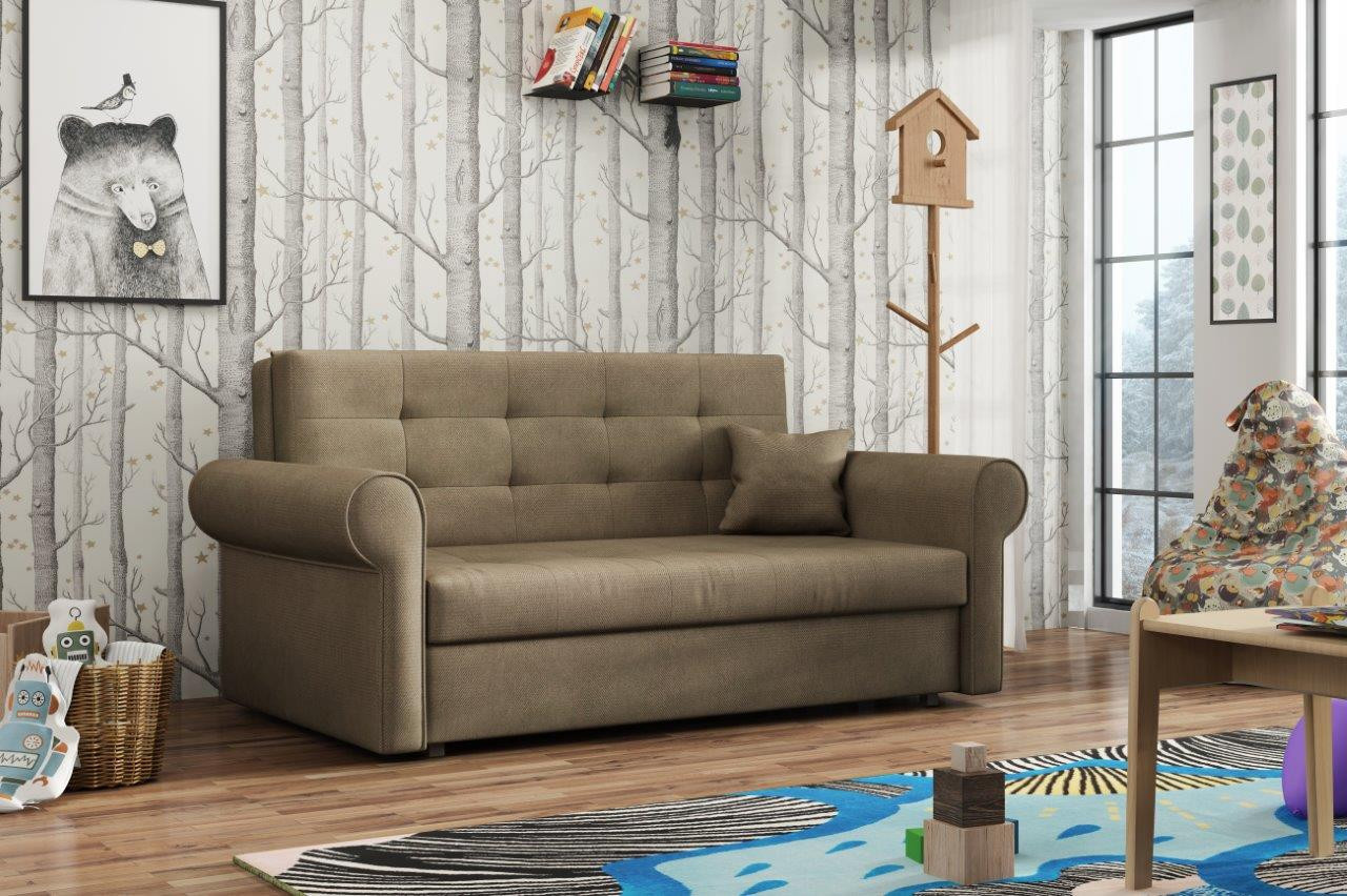 Rozkládací pohovka Vivian je díky svým rozměrům vhodná i do menších pokojů. Své uplatnění najde nejen v obývacím pokoji, ale také v dětském, studentském, nebo hostinském pokoji. Jednoduchým rozložením pomocí automatu, získáte lůžko k příležitostnému přespání Vaší návštěvy. Výplň sedáku tvoří vlnité pružiny v kombinaci s PUR pěnou. Pohovka je potažena kvalitní látkou a nabízíme ji v několika trendy odstínech. Pohovka disponuje i nepostradatelným úložným prostorem, který využijete např. na deku a polštář. V ceně pohovky je 1 dekorační polštář. Ostatní vyobrazené dekorace nejsou v ceně. Zobrazení barev na fotografii se může od skutečnosti lišit.