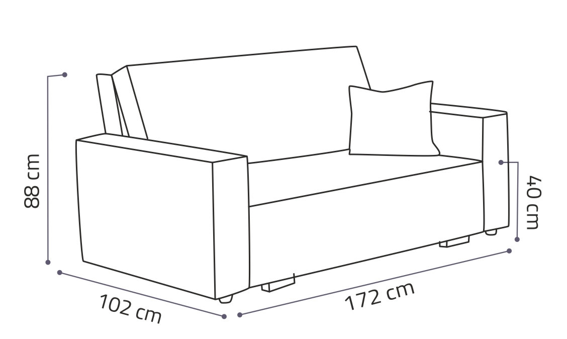 Pohovka je vhodná do dětského, studentského, nebo hostinského pokoje. Jednoduchým rozložením pomocí automatu, získáte lůžko k příležitostnému přespání Vaší návštěvy, nebo kamaráda Vašich dětí. Výplň sedáku tvoří vlnité pružiny v kombinaci s PUR pěnou. Pohovka je potažena kvalitní látkou s výběrem několika trendy odstínů. Pohovka disponuje i nepostradatelným úložným prostorem, který využijete např. na deku a polštář. Ostatní vyobrazené doplňky a dekorace nejsou v ceně. Zobrazení barev na fotografii se může od skutečnosti lišit.