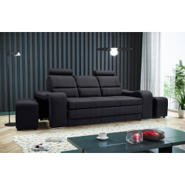 WENUS je masivní pohovka s originálním designem, která se skvěle hodí do moderně zařízeného obývacího pokoje pro volný čas. Tvarovaná pohovka stojí na nízkých chromovaných nožkách, které nábytku dodávají moderní nádech. Boční rozkládací pohovka je vybavena funkcí automatického asistovaného rozkládání, díky které můžete pohovku rychle a efektivně proměnit v pohodlné a bezpečné lůžko. Pohovka WENUS s funkcí spaní má zabudovaný úložný prostor na taburety - souprava obsahuje dva taburety, které lze použít jako další sedadlo, a praktické podnožky při odpočinku. Pohovka s bočnicemi je navíc vybavena prostorným úložným prostorem na lůžkoviny, do kterého lze snadno uložit přikrývky, polštáře a další předměty denní potřeby. Představený model se vyrábí na speciální objednávku, takže si můžete vybrat z široké škály barev látek, díky nimž můžete nábytek dokonale sladit s uspořádanou místností. Moderní kus nábytku je vyplněn HR pěnou na opěradle a pěnou T-30 na sedáku, což zajistí pohodlí a komfort i při mnohahodinovém sezení. Pohovka WENUS je volně stojící kus nábytku, a proto je čalouněná i zadní část pohovky - lze ji umístit nejen ke stěně, ale i do centrální části místnosti.