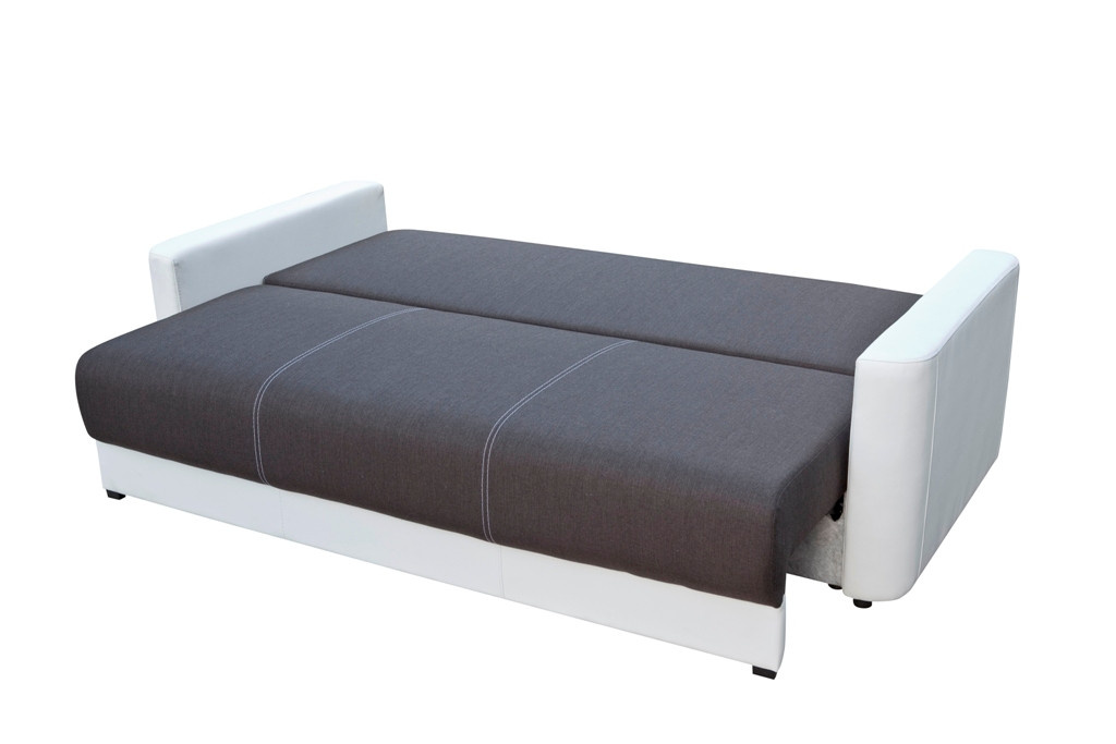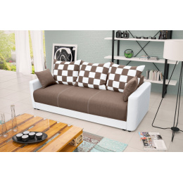 Moderní pohovka XARA je rozkládací kus nábytku vyrobený na míru a vybavený úložným prostorem na lůžkoviny, do kterého se snadno vejde spoustu drobností či lůžkovin. Tuto volně stojící pohovku lze čalounit látkou v široké škále barev; v základním provedení jsou vložky pohovky vyrobeny z bílé ekokůže. Pohovka je vybavena automatickým asistovaným systémem rozkládání, díky kterému ji každý zvládne rychle rozložit nebo složit bez větších problémů. Pohovka je umístěna na dřevěném rámu, který zaručuje její odolnost a stabilitu. Sedák i opěrák pohovky jsou vyplněny vlnitou pružinou a pěnou, díky čemuž si kus nábytku zachová patřičnou pružnost - ani při častém používání na něm nevzniknou nevzhledné otlaky. Pohovka s praktickými bočnicemi na opěradle je vybavena pohyblivými polštáři, které budou plnit nejen dekorativní funkci, ale také zajistí správnou oporu zad.