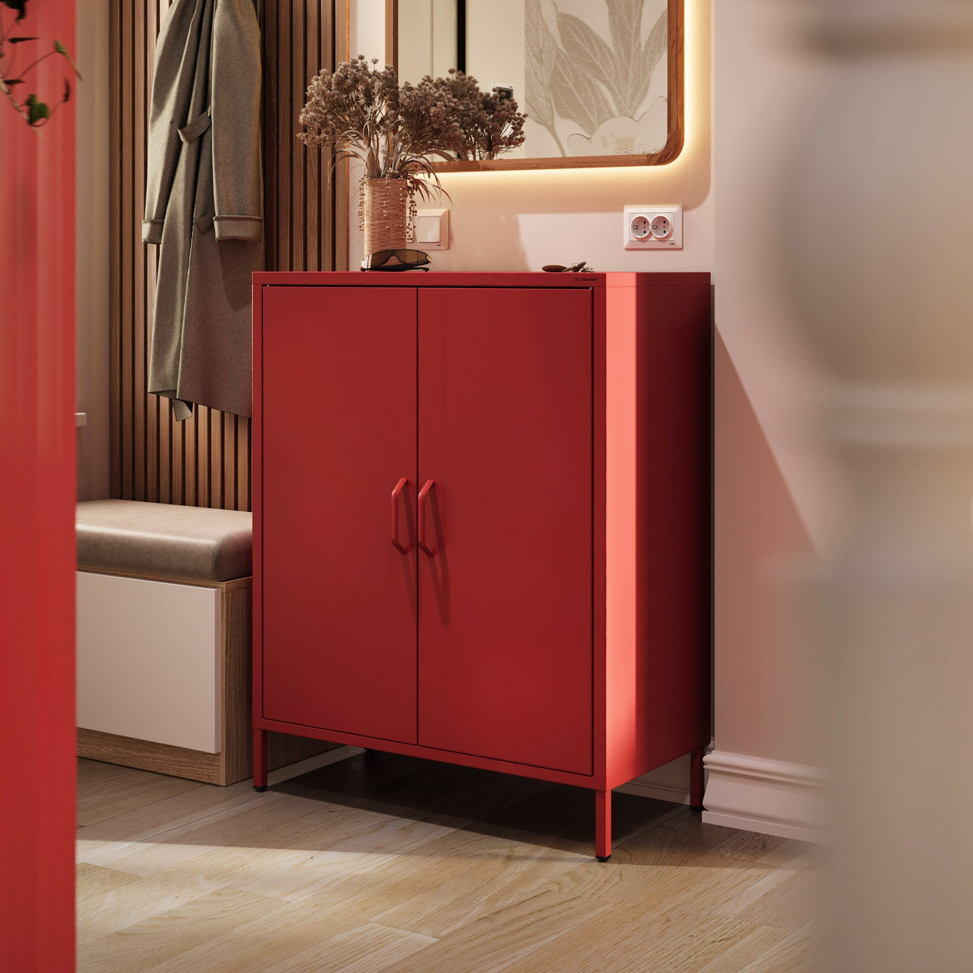 A VITO szekrény úgy lett tervezve, hogy első pillantásra megragadja a figyelmet. Minimalista vonalai és elegáns kivitelezése különböző stílusokhoz illik – a modern és glamour stílustól kezdve az ipariig és az eklektikusig. Akár a nappaliba, hálószobába, dolgozószobába vagy előszobába helyezi, mindig remekül fog kinézni.