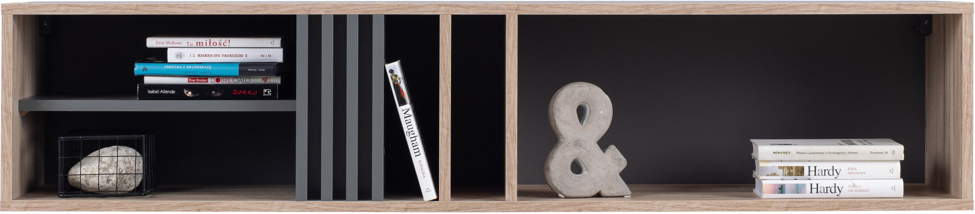 Az ALLMO rendszer Estana világos tölgy / Antracit színben készült. A bútor korpus Estana világos tölgy színárnyalatban készült.