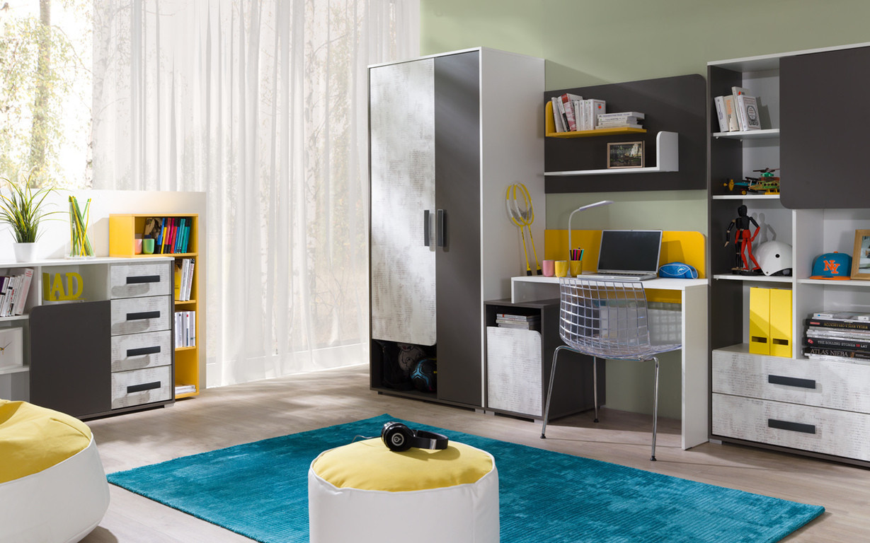 Police BRUNO, Bílá/Grafit/Žlutá