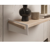 A Polička Ovo egy modern és stílusos kiegészítő a belső terekhez, amelyet eredeti dizájn és magas színvonalú kidolgozás jellemez. A polc jellegzetes, lekerekített formája harmóniát és finomságot visz a térbe, egyedi stílust kölcsönözve neki. Ez a modell a minimalista dizájn szerelmeseinek készült, akik értékelik az esztétikát a funkcionalitással összekapcsolva. A fém oldalsó fogantyúk nemcsak stabilitást kölcsönöznek az Ovo polcnak, hanem kifinomult jelleget is. Az Ovo polc a fogantyúk gazdag színpalettájának köszönhetően – a klasszikus árnyalatoktól, mint a fekete vagy fehér, egészen a feltűnőbb színekig, mint a mélyzöld, tengerészkék, vagy a divatos, fémes felületek – dekoratív elemmé válik, amely könnyen alkalmazkodik a különböző belső tér elrendezésekhez. A polc nagyszerűen mutat mind a lakóterekben, mint például a nappaliban, hálószobában vagy előszobában, mind pedig a modern irodákban vagy dolgozószobákban. Az Ovo polc fém fogantyúkkal azok számára készült, akik elegáns és egyben funkcionális megoldást keresnek tárgyak tárolására és kiállítására.