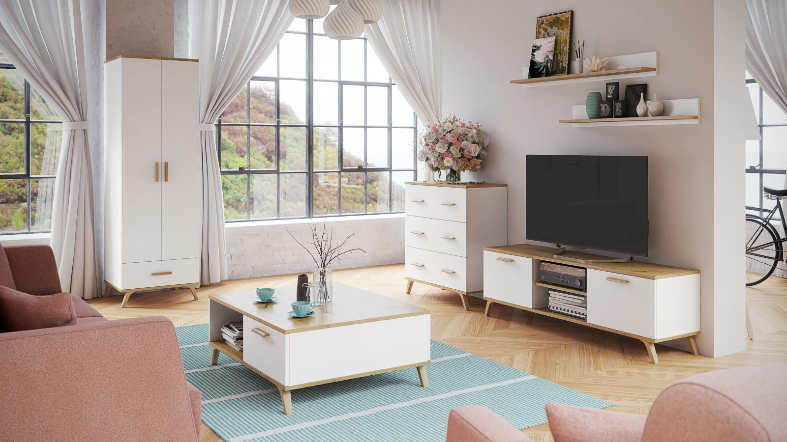Police ROKY 4, Bílá/Dub artisan
