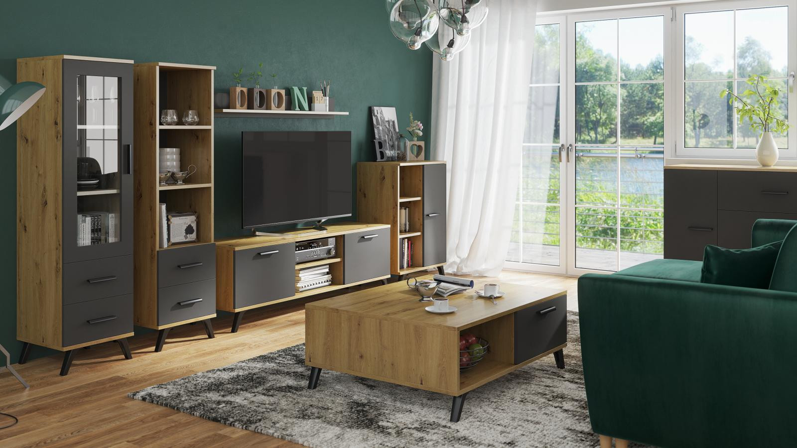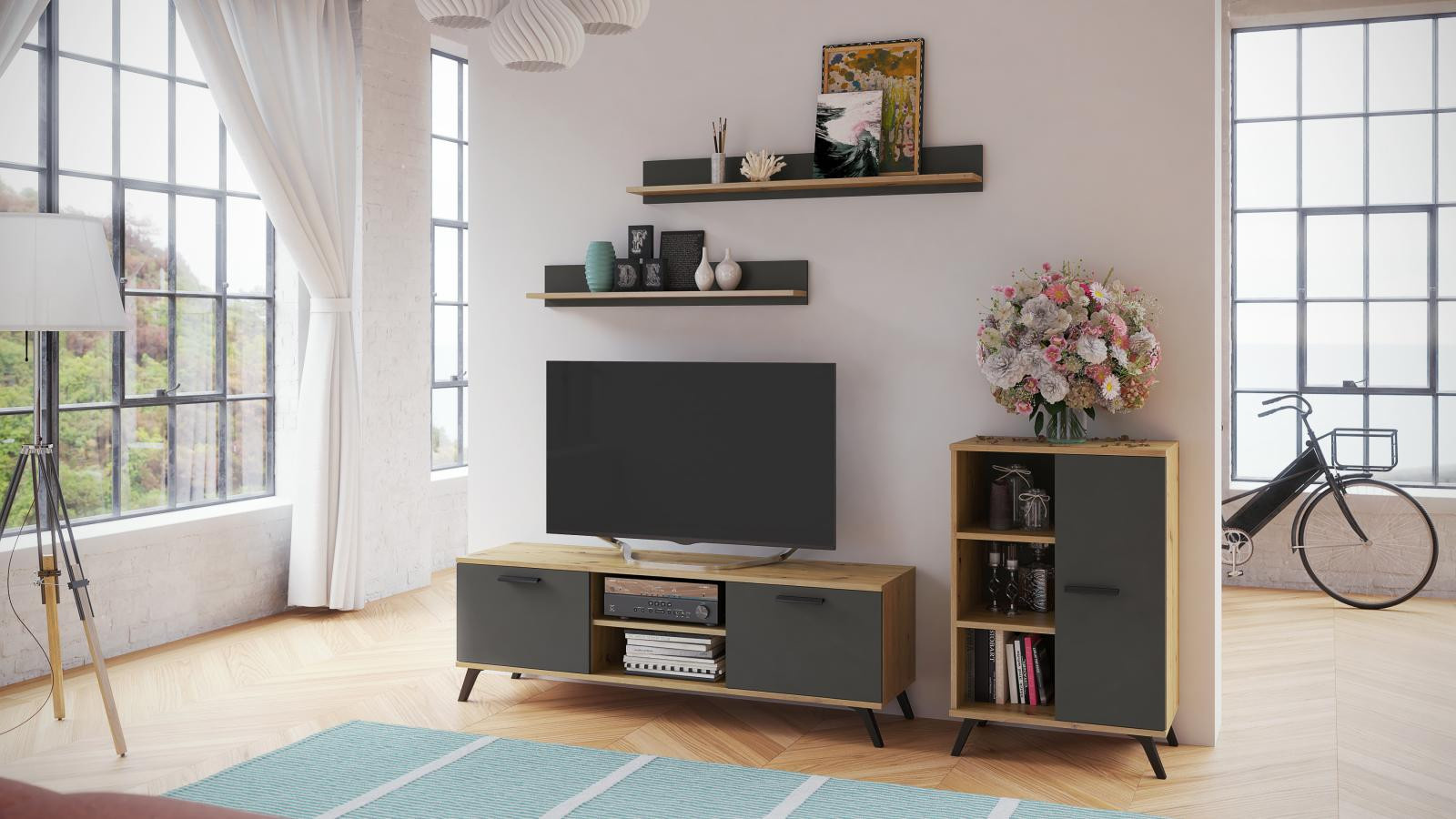 Police 120 cm Roky 4 Grafit je vyrobena z lamina v krásném dekoru grafit a dub artisan. Lamino tloušťky 18 mm je odolné a je zakončeno lištou ABS. Jistě oceníte i snadnou údržbu.