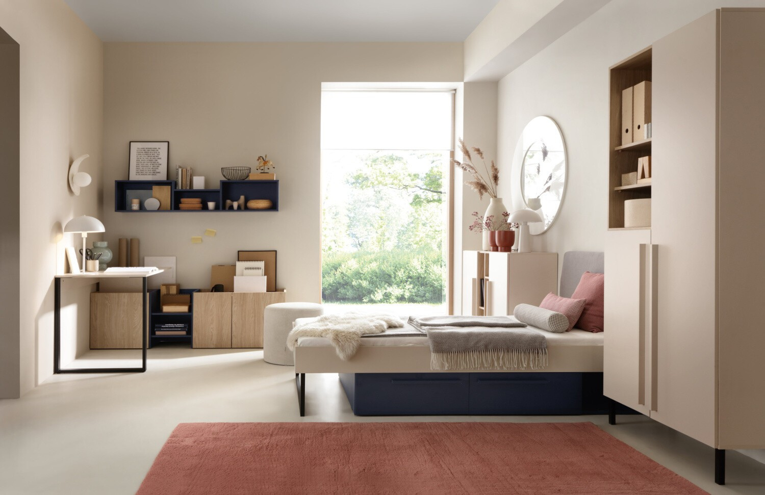 A SERGIO rendszer két színváltozatban készül - Bézs homok/Olajozott tölgy/Királykék és Eukaliptusz/Baltic Dune tölgy/Fekete Onyx kivitelben.