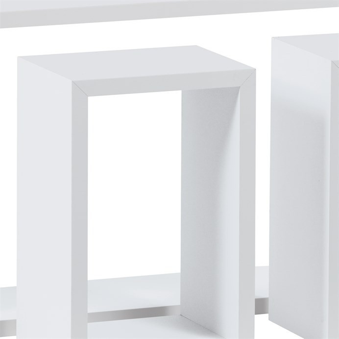 Sada tří nástěnných polic v matném bílém provedení je vyrobena z MDF materiálu, který zajišťuje pevnost a stabilitu. Jednoduchý a čistý design umožňuje variabilní uspořádání na stěně podle potřeby a stylu interiéru. Poličky jsou vhodné pro vystavení drobných dekorací, knih či praktických předmětů, přičemž jejich povrch se snadno udržuje. Díky různým rozměrům jednotlivých kusů lze vytvořit zajímavé kompozice, které prostor opticky oživí. Balení obsahuje ochrannou fólii pro bezpečnou manipulaci a přepravu.