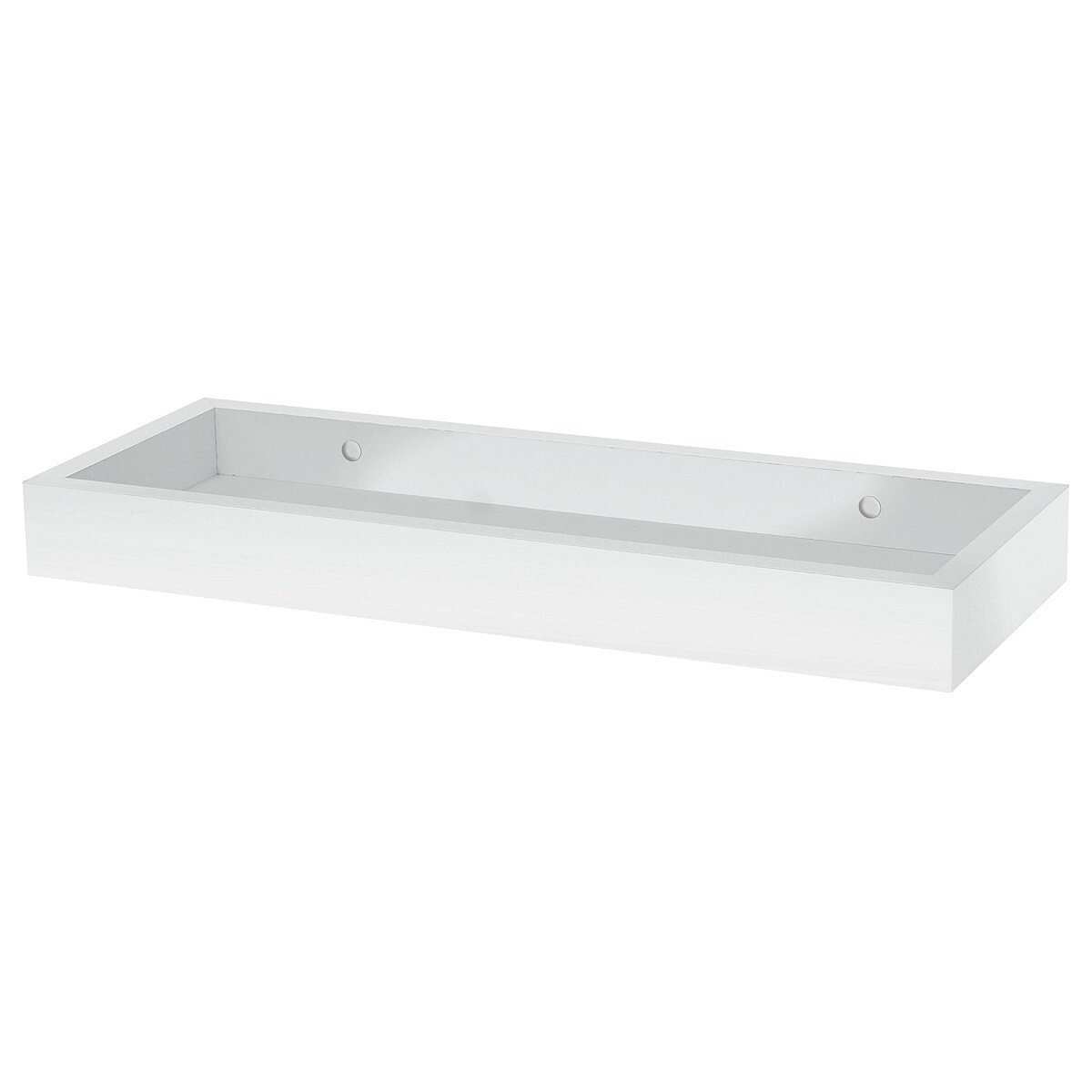 Nástěnná polička v bílém matném provedení je vyrobena z MDF materiálu, který zajišťuje pevnost a snadnou údržbu. Zvýšené okraje poličky pomáhají bezpečně udržet drobné předměty na místě, což ji činí praktickou pro různé domácí i kancelářské prostory. Její jednoduchý a čistý design umožňuje snadné začlenění do různých stylů interiéru. Polička je dodávána v balení s ochrannou fólií, která chrání povrch během přepravy a instalace. Vhodná pro zavěšení na zeď, kde nabízí funkční a estetické řešení úložného prostoru.
