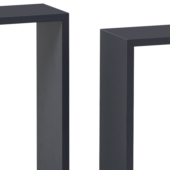 Sada tří nástěnných poliček v matném šedém provedení je vyrobena z MDF materiálu, který zajišťuje pevnost a stabilitu. Jednoduchý hranatý tvar a neutrální barva umožňují snadné začlenění do různých interiérů, od moderních po minimalistické. Poličky jsou baleny v ochranné fólii, což usnadňuje jejich bezpečnou manipulaci a montáž. Vhodné pro vystavení dekorací, knih nebo drobných předmětů, přičemž jejich kompaktní rozměry šetří prostor na stěně.