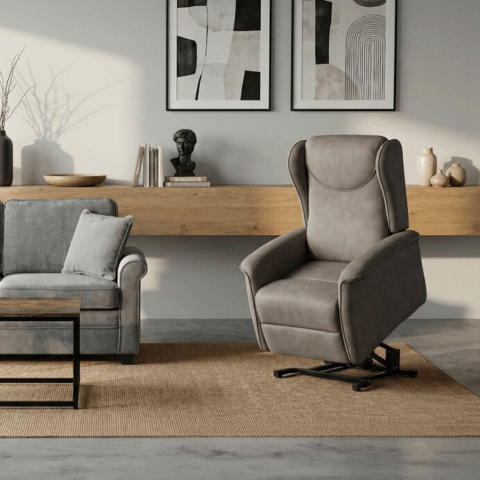 Polohovací TV křeslo s elektrickým ovládáním a dvěma motory nabízí komfortní relaxaci s možností individuálního nastavení opěradla a podnožky. Potah z béžové látky je příjemný na dotek a snadno se udržuje, zatímco pevná kovová podnož zajišťuje stabilitu celé konstrukce. Křeslo disponuje výklopnou funkcí pro snadné vstávání a rozkládací mechanikou, která umožňuje prodloužení sedáku pro maximální pohodlí. Elektrické kabelové ovládání je intuitivní a umožňuje plynulé nastavení polohy podle potřeby uživatele. Díky dvěma motorům je možné samostatně ovládat opěradlo i podnožku, což přispívá k ergonomickému sezení a odpočinku.