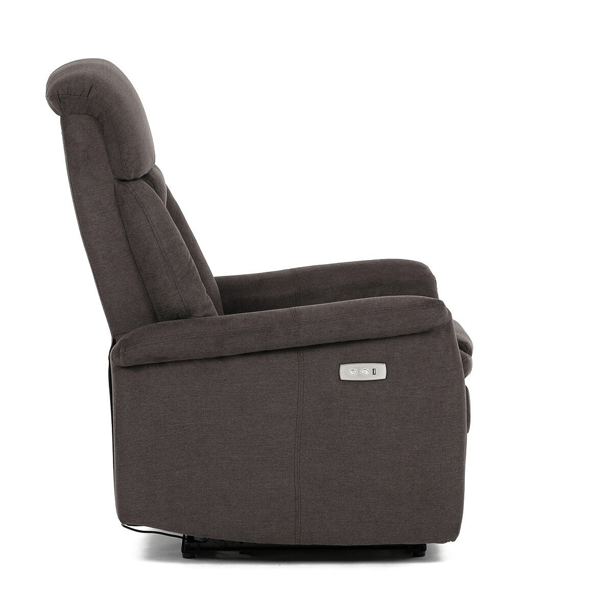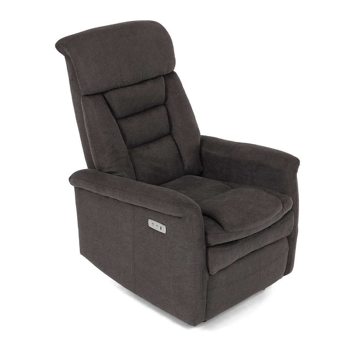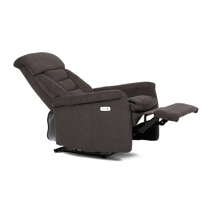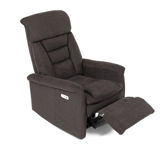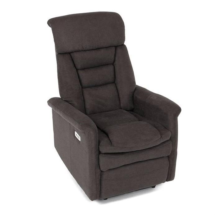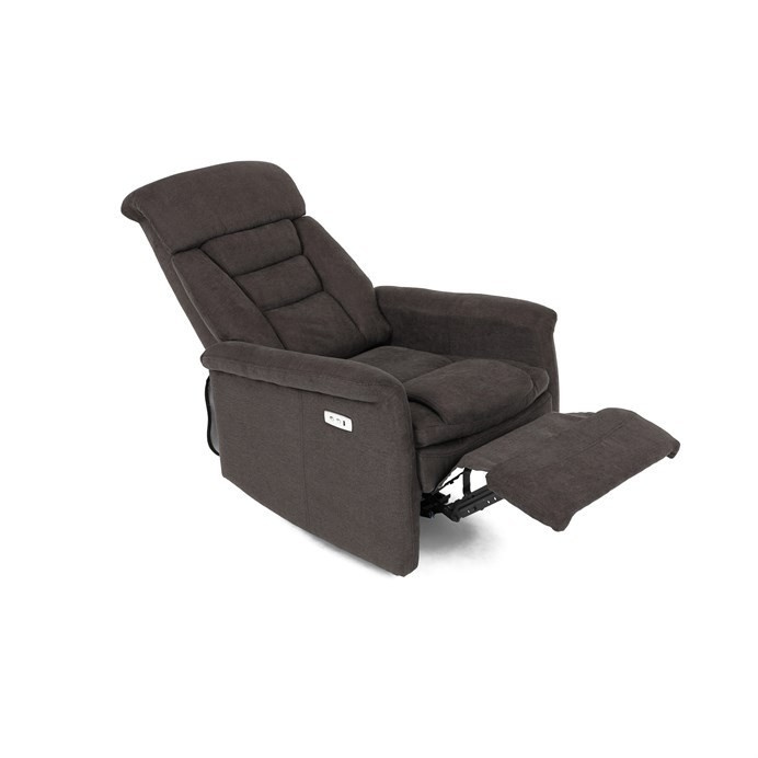 Polohovací křeslo s elektrickým ovládáním v hnědém látkovém potahu nabízí komfortní sezení s možností nastavení polohy pomocí jednoho motoru. Vysoký opěrák poskytuje dostatečnou oporu hlavy a zad, zatímco měkké čalounění z kvalitní látky zajišťuje příjemný dotek a snadnou údržbu. Křeslo je vybaveno pevnými područky a praktickým USB konektorem pro pohodlné nabíjení elektronických zařízení během odpočinku. Stabilní základna a robustní rám přispívají k dlouhé životnosti a bezpečnému používání. Elektrické ovládání umožňuje plynulé nastavení polohy pro maximální relaxaci.