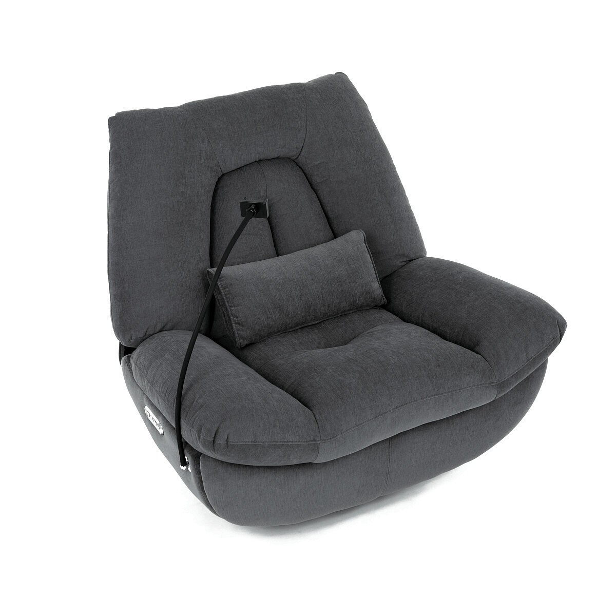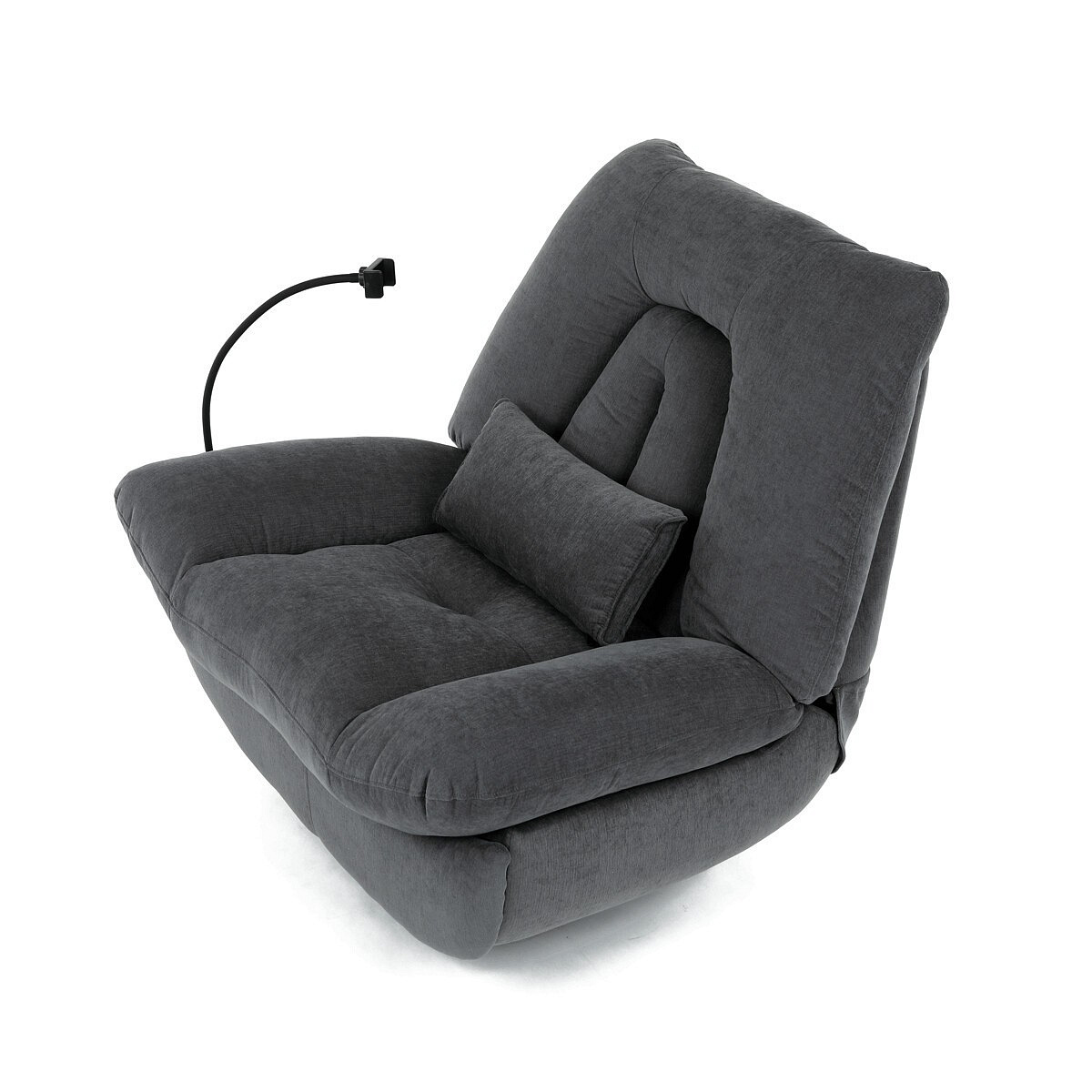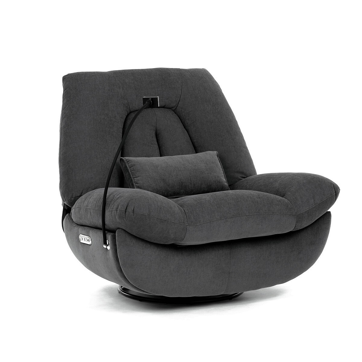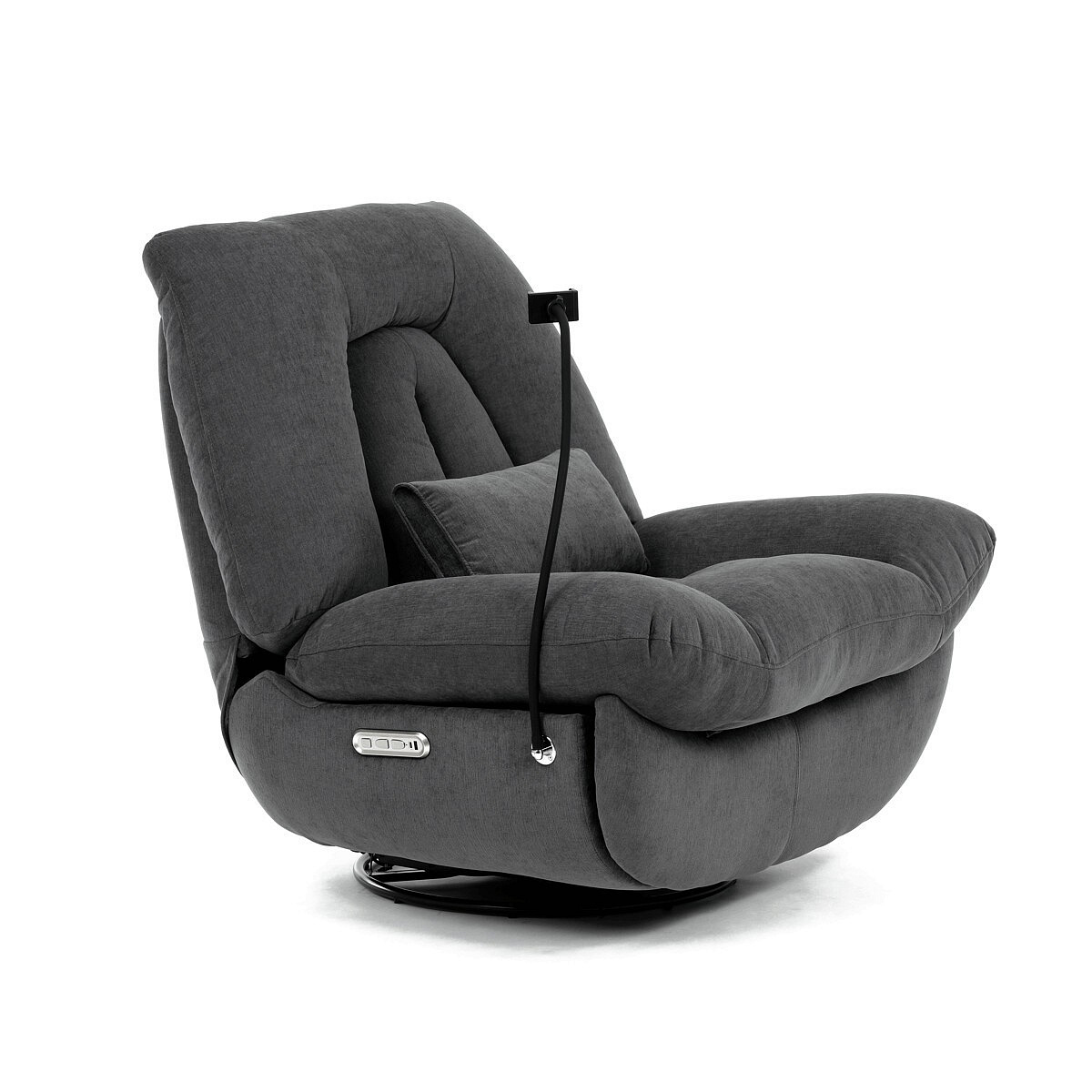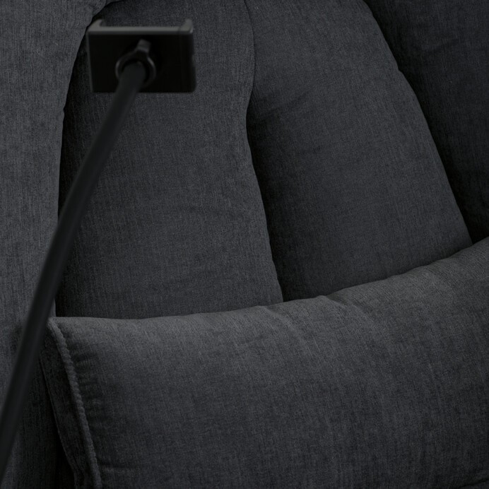 Polohovací elektrické křeslo v šedé látce nabízí komfortní sezení s možností nastavení polohy díky dvěma samostatným motorům. Robustní kovová základna umožňuje rotaci až do 240° a zároveň funkci houpání s úhlem 30°, což přispívá k relaxaci a variabilitě užívání. Zabudované ovládání je intuitivní a doplněné o USB-A a USB-C porty pro snadné nabíjení elektronických zařízení. Praktický úložný box integrovaný v křesle poskytuje prostor pro drobnosti, zatímco držák telefonu zvyšuje uživatelský komfort. Polstrované područky a ergonomicky tvarované opěradlo s přidaným polštářkem podporují správné držení těla, přičemž nosnost křesla je 160 kg.